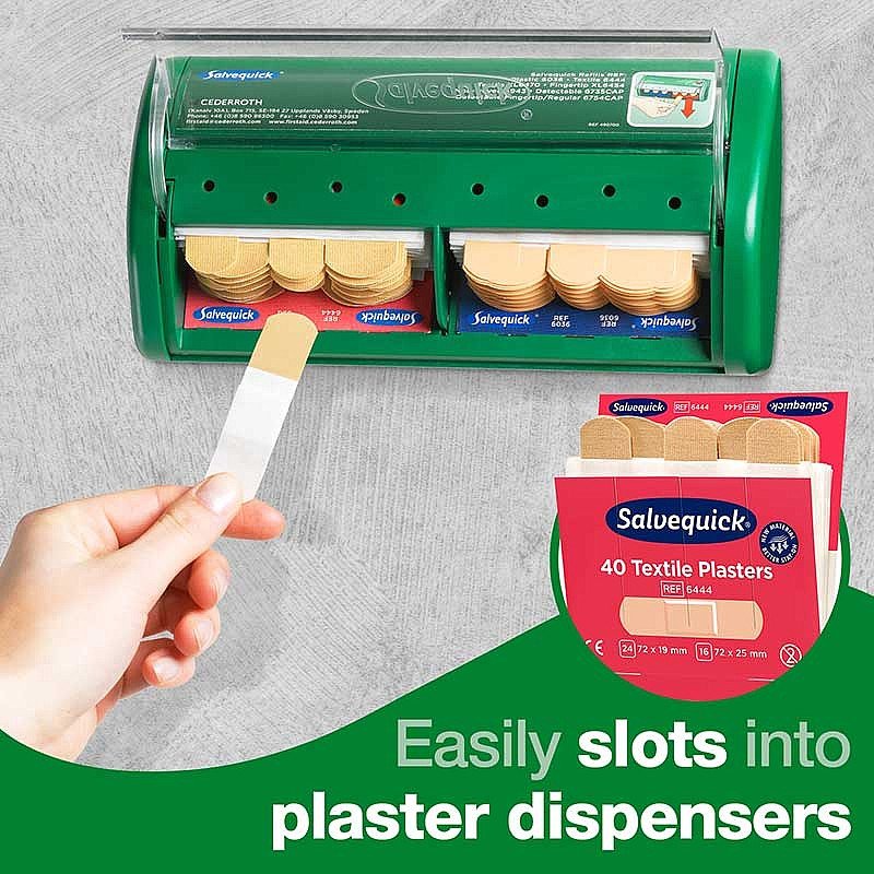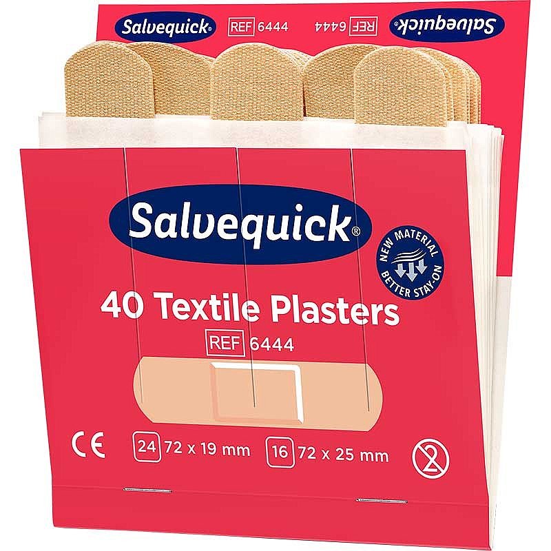 Each refill contains, 40 plasters, 24 plasters sized 72 x 19mm, 16 plasters sized 72 x 25mm 6 refills in a box