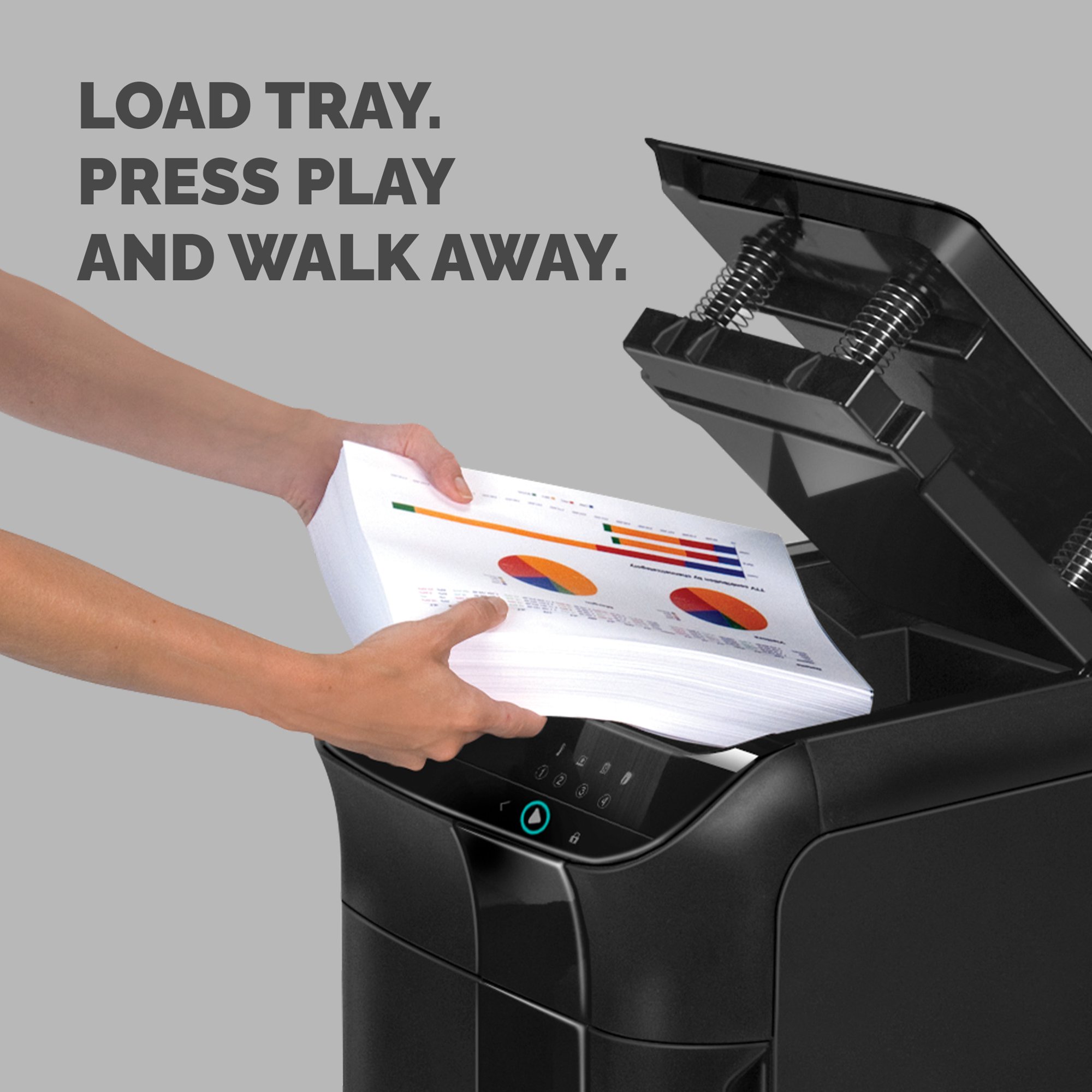 The Fellowes AutoMax 600M auto feed paper shredder brings you truly walk-away, automatic shredding for the office environment. Designed for everyday secure shredding in the office, the 600M can shred an A4 sheet into 2 x 12mm micro-cut particles and shreds continuously. With the ability to shred 600 sheets (70gsm) at a time automatically (or 14 manual) the 600M is the most productive way to protect your privacy. The large 83-Litre pull out bin is ideal for frequent shredding and can hold up to 900 shredded sheets. This shredders powerful micro-cut cutters will not only shred your documents, but can shred staples, paper clips & credit cards too! The 600M is built for quieter shredder performance with SilentShred technology, which minimises noise disruption in your workspace. It also offers frustration free shredding, thanks to its Auto Reverse feature that stops the shredder and reverses the paper to prevent jams from occurring. It's Sleep Mode feature will cause the machine to switch to standby mode after periods of inactivity as well, saving energy when not in use. Fellowes shredders are built to last with solid steel cutters, a powerful motor and parts that are engineered to outperform our Compatibleetitors.