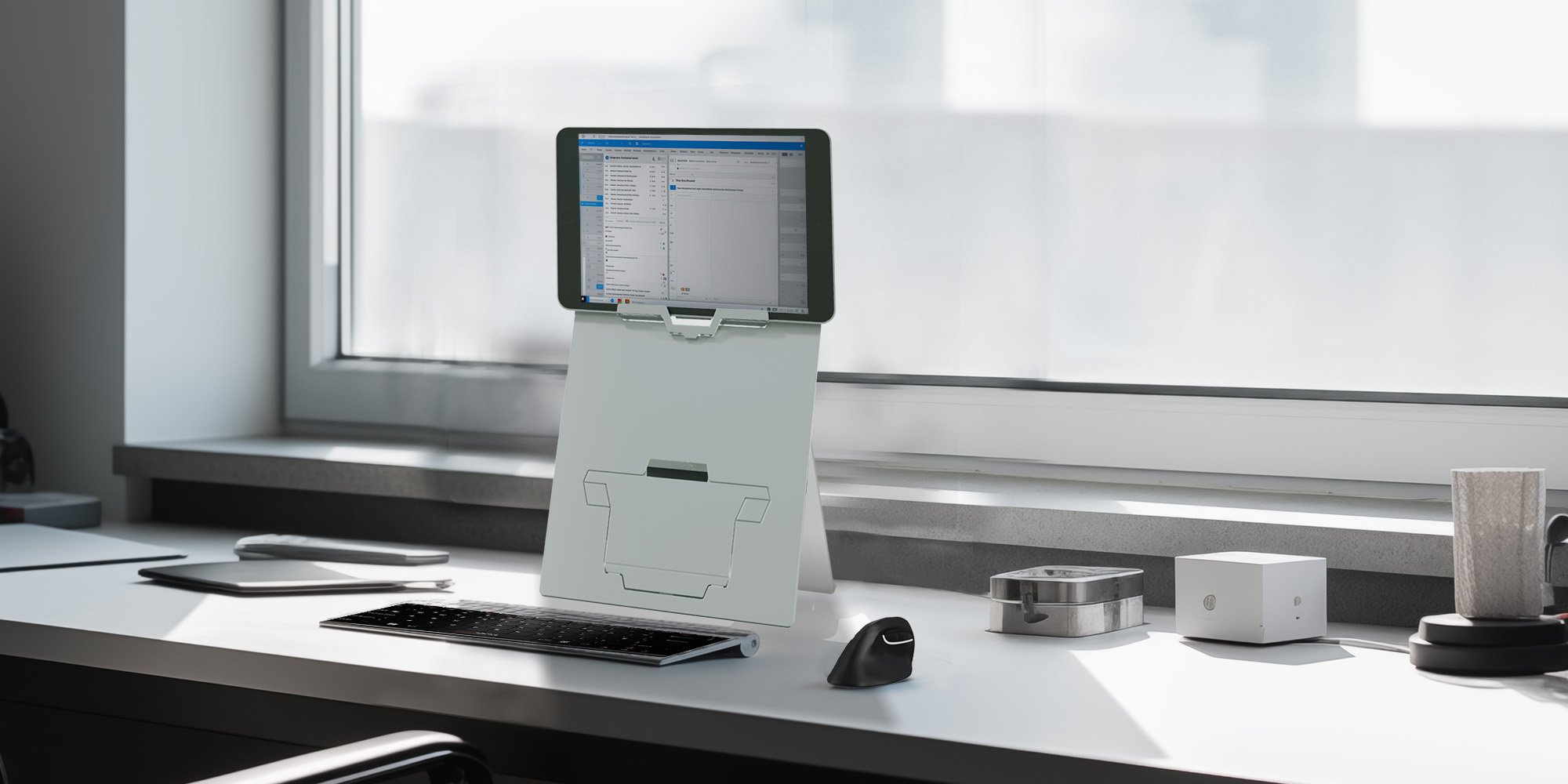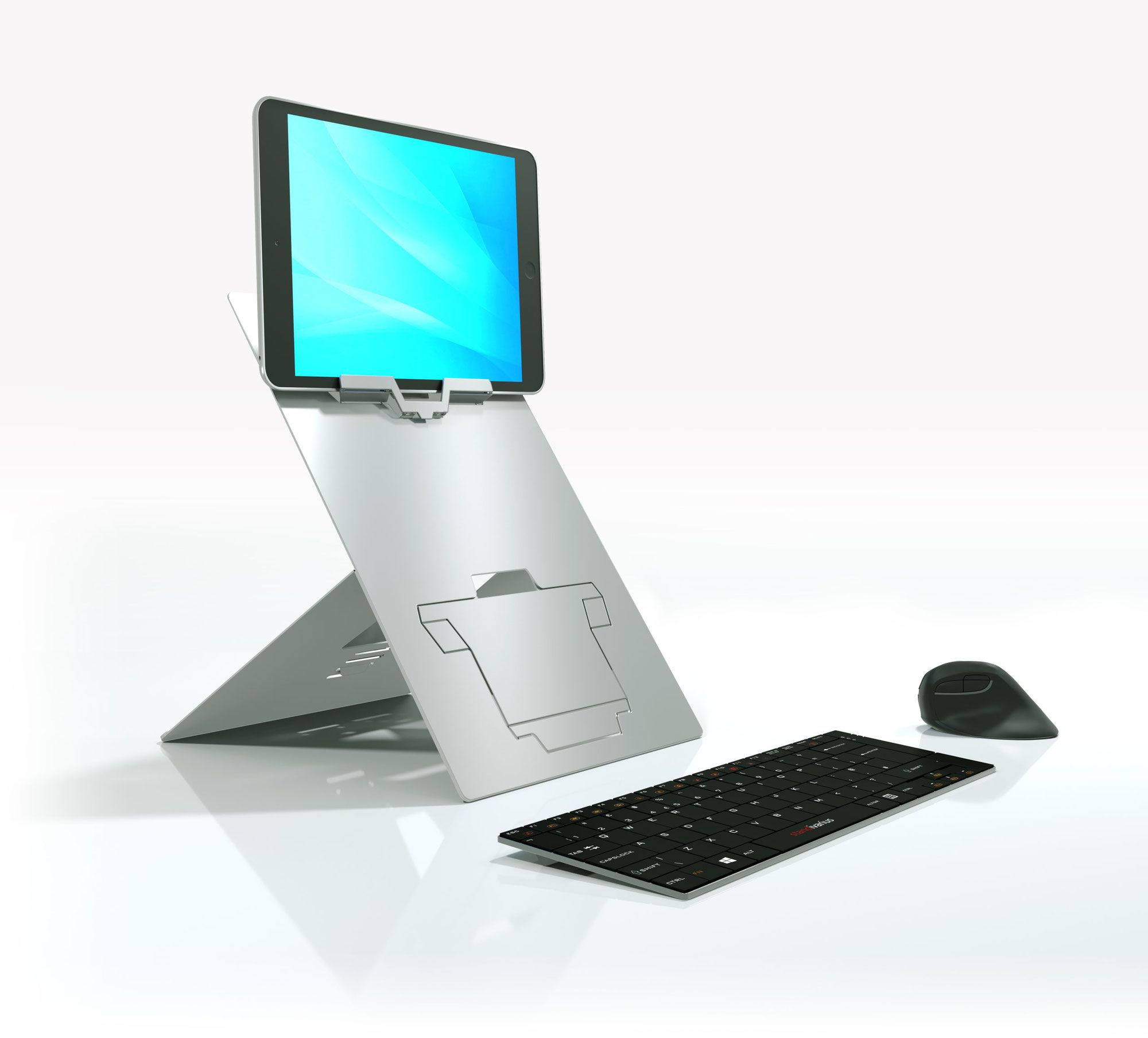 2 in 1 hybrid ergonomic laptop and tablet stand with retractable in-line document holder for business comfort and pain-free work.<br><br>It has been specially developed to fit both laptops and tablets allowing ergonomic work on both machines. The height adjustable design allows Oryx PRO to raise the laptop or tablet to a comfortable working position. <br><br>A versatile ergonomic accessory designed to Compatiblely with European health & safety regulations.<br>Created with the user in mind: instant setup and pack away, lightweight and thin for true mobility, easily adjustable screen elevation and inclination.<br>Refined design, minimalist but very sturdy, guaranteed against malfunction for life.