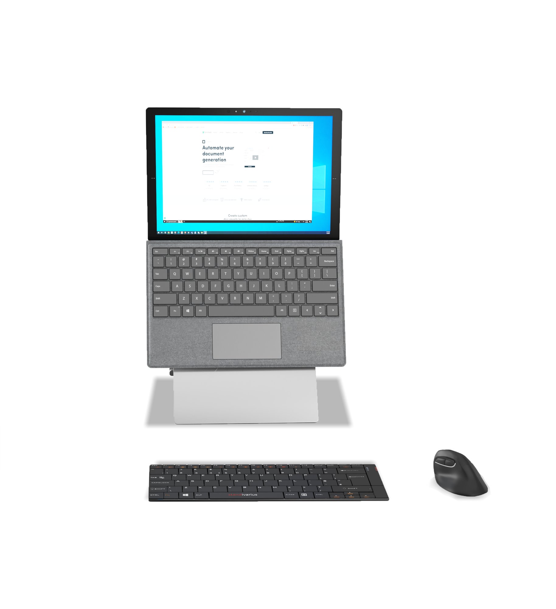 Specialised ergonomic laptop stand developed to fit Microsoft's Surface Pro product family. The height adjustable design allows the KickStand to raise the laptop to a comfortable working position, with or without the type cover.<br><br>A versatile ergonomic accessory designed to Compatiblely with European health & safety regulations.<br>Created with the user in mind: instant setup and pack away, lightweight and thin for true mobility, easily adjustable screen elevation and inclination.<br>Refined design, minimalist but very sturdy, guaranteed against malfunction for life.