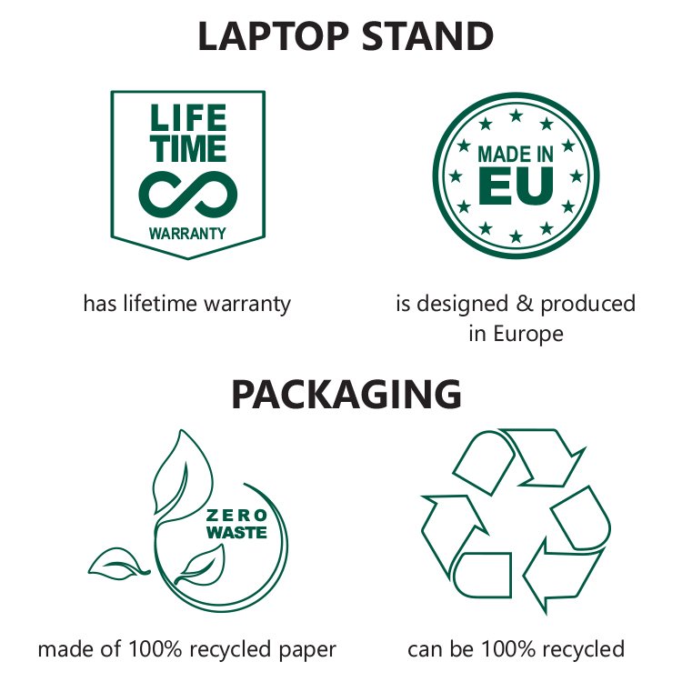 Ergonomic laptop stand for business comfort and pain-free work.<br><br>It has been developed to fit the majority of the laptops available on the market. The height adjustable design allows the stand·art to raise the laptop to a comfortable working position. <br><br>A versatile ergonomic accessory designed to Compatiblely with European health & safety regulations.<br>Created with the user in mind: instant setup and pack away, lightweight and thin for true mobility, easily adjustable screen elevation and inclination.<br>Refined design, minimalist but very sturdy, guaranteed against malfunction for life.