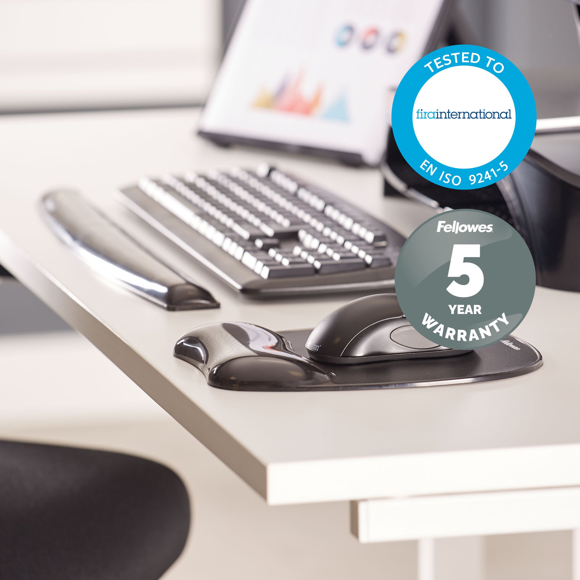 This self adjusting gel mouse mat with wrist support allows personalised comfort as the wrist rest has the ability to conform to your wrist, which helps relieve pressure and fatigue whilst using your mouse. With the easy clean surface, the design allows you to wipe the mouse pad clean with a damp cloth, making it ideal for all environments. To prevent frustration in the workplace or at home, Fellowes have incorporated a non-skid rubber backing to the mouse mat which keeps wrist rest in place and prevents it from slipping around. Fellowes understand that bad working habits cause many of us physical health problems and fatigue. By using this knowledge Fellowes have created a Compatiblerehensive range of ergonomic solutions like this designed mouse mat, that help you enjoy a more comfortable and productive workspace.