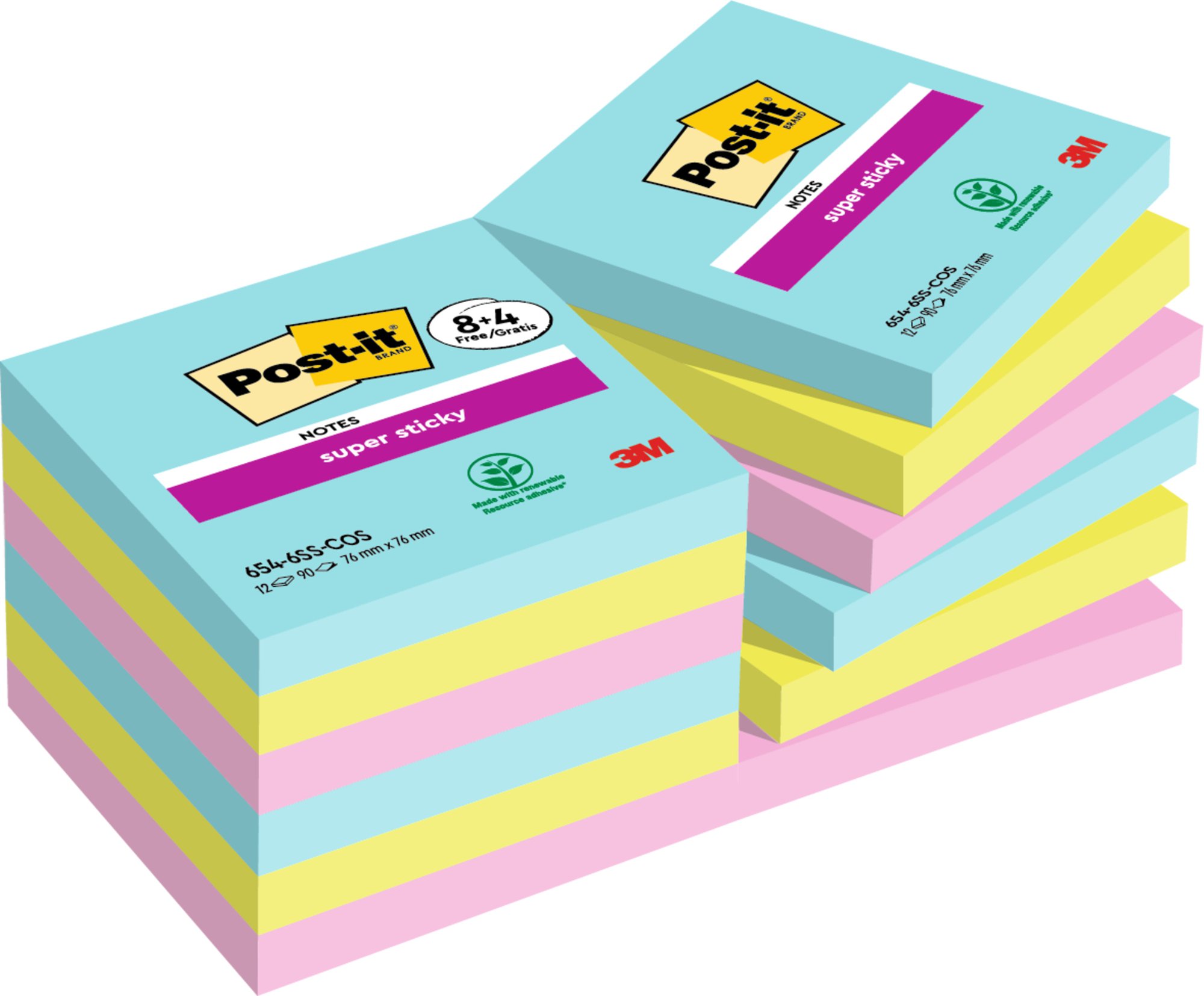 Post-it Super Sticky Notes hold stronger and last longer. They have 2x the sticking power of Post-it Original Notes so you can be sure that your message gets through. <br><br>Perfect for vertical and hard to stick to surfaces, these self stick notes are ideal for making notes or leaving messages and reminders. <br><br>Coming in bright and intense colours, they€™re super strong, super versatile and designed to make your messages stand out.<br><br>Made from PEFC certified paper, sourced from certified, renewable and responsibly managed forests, with a 60 % renewable resource adhesive from a plant that regrows annually.