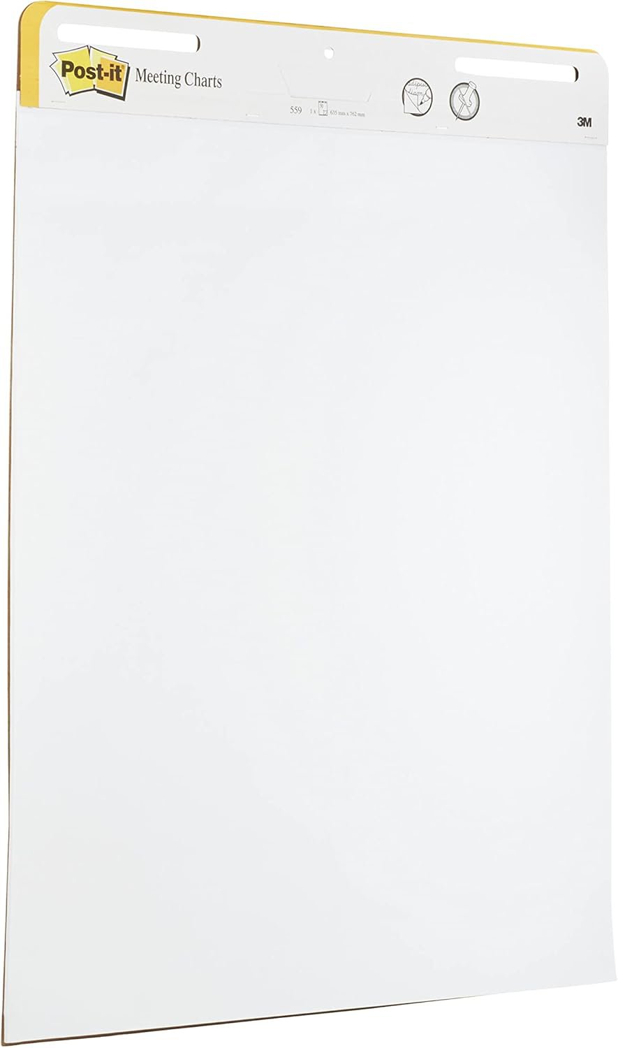 Post-it Self Stick Super Sticky Meeting Charts are plain white flipcharts designed to support meetings and presentations. With an adhesive backing, the sheets stick securely to most wall surfaces and can be cleanly removed and repositioned. Simply think, write and keep your work visible. The high-quality paper has bleed-through resistance and the charts feature universal slots which fit most easel or flipchart stands. They can also be hung on a wall using Post-it Super Sticky Wall Easel.<br>Reinvigorate meetings and presentations with Post-it Self Stick Meeting Charts. They're ideal for brainstorming and problem solving in collaborative work settings. Easel paper sticks and re-sticks, holding up to 2X longer to most surfaces and can be repositioned without surface damage. No tape or tacks needed unlike standard flip chart paper. Our flipchart easel pads feature premium, bright white paper that resists marker bleed-through so there's no wasted paper or marked walls. The sturdy back cards have handles for easy portability and feature universal slots that fit most easel or flipchart stands. For a more hands-free approach, a Post-it Super Sticky Wall Easel is available so you can hang your meeting chart directly onto the wall. Ignite your team's potential with Teamwork Tools by Post-it Brand. Download the free Post-it App to instantly capture and save your work so you can share notes with the team without recaps or delays.