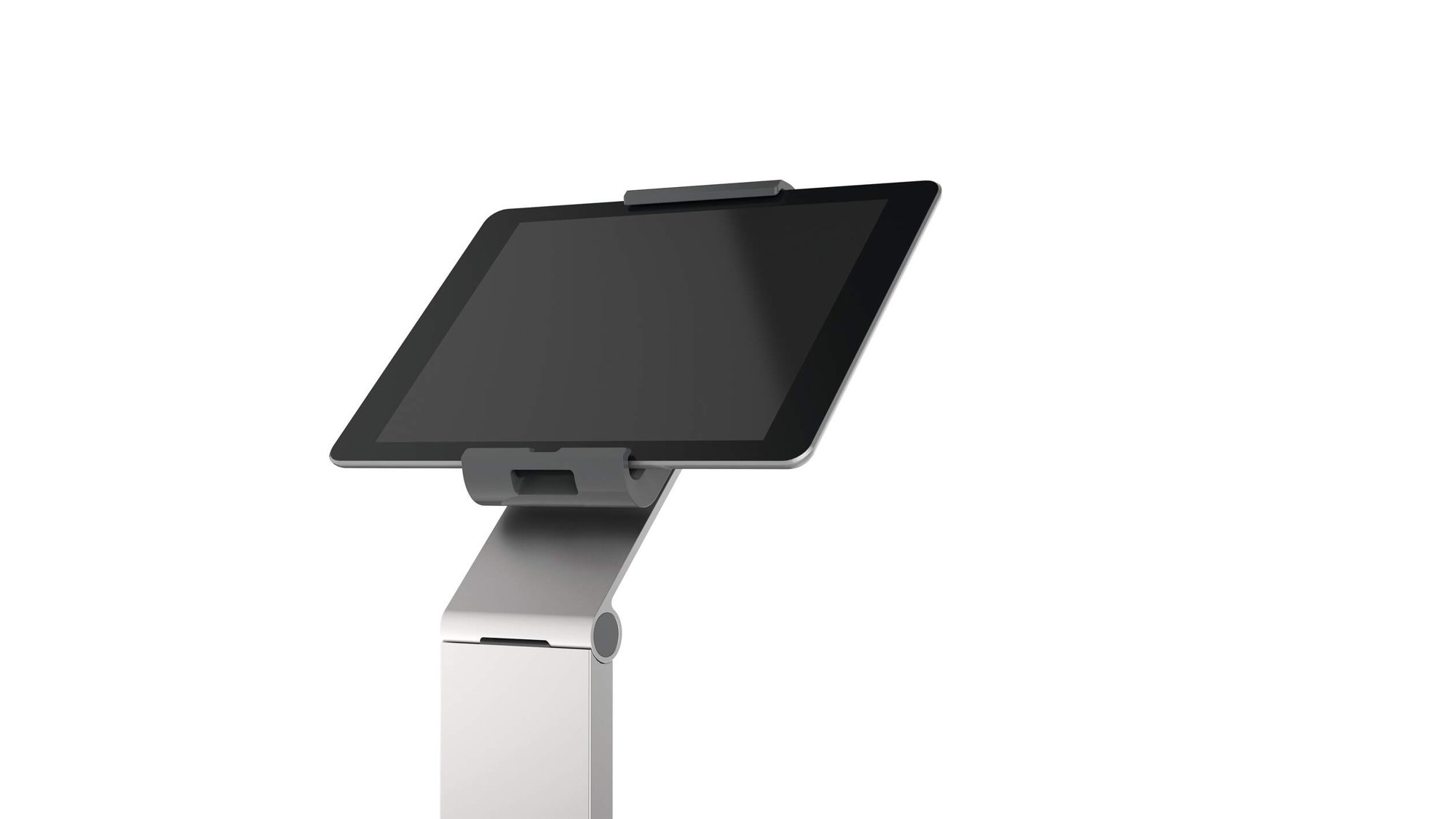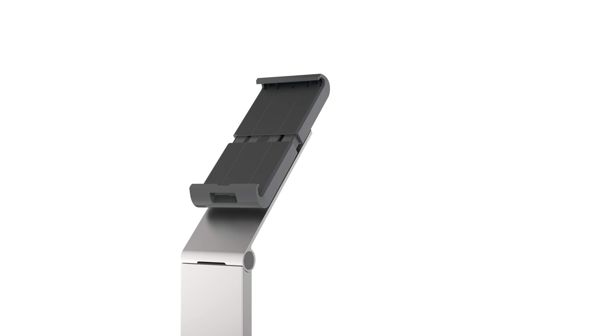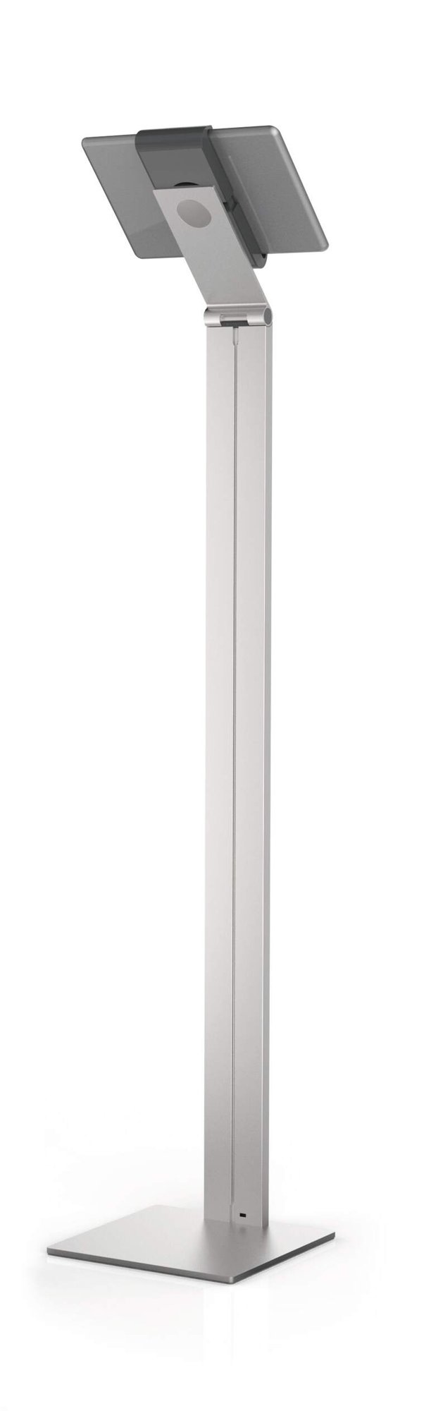 A modern and stylish tablet holder in Silver which is perfect for any working environment. The tablet holder securely holds tablets from 7 to 13" and includes an anti-theft system to prevent unauthorised removal of the tablet. The clamp securely holds the tablet in place and is rotatable 360° for use in both portrait and landscape format.<br><br>The clamp can also be tilted 0° to 88° for Compatiblelete flexibility. The stand is made from sheet steel and aluminium provides stability when using the device. Perfect for use in hotels