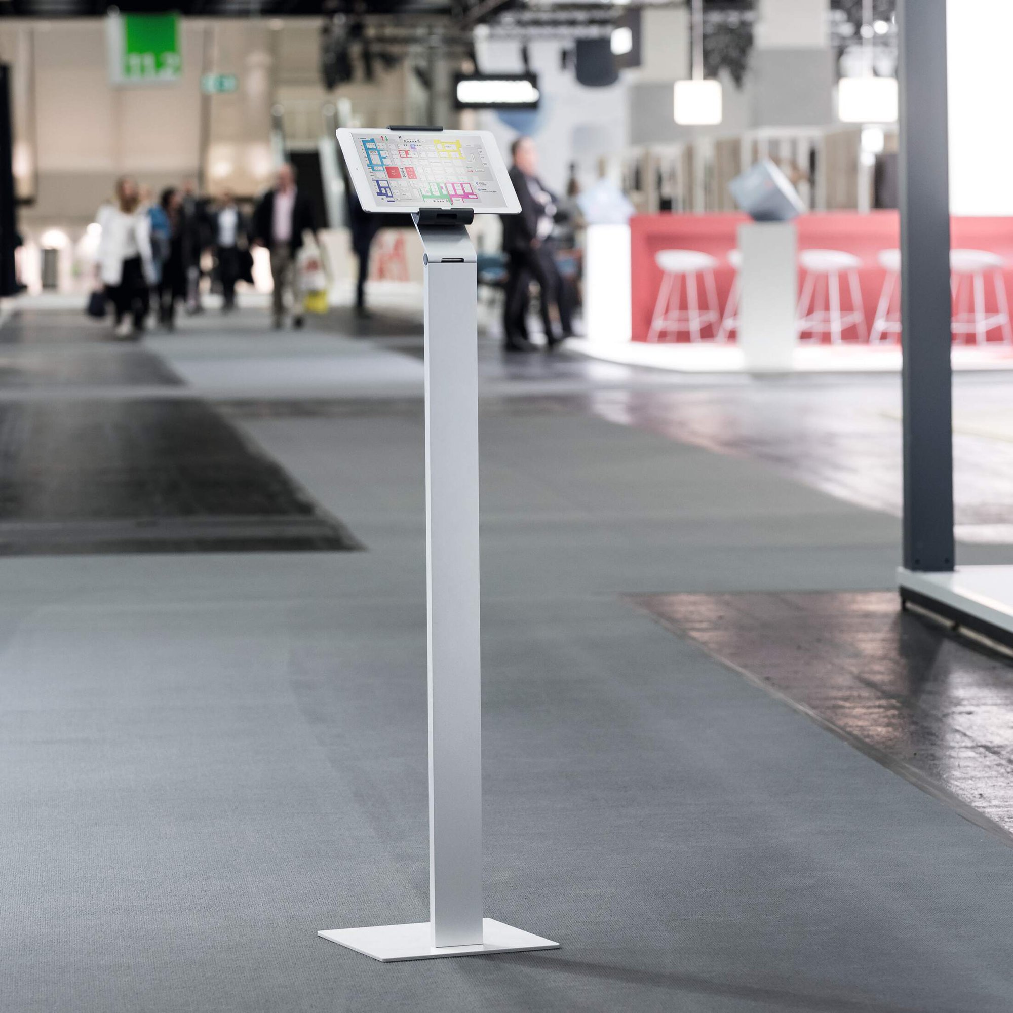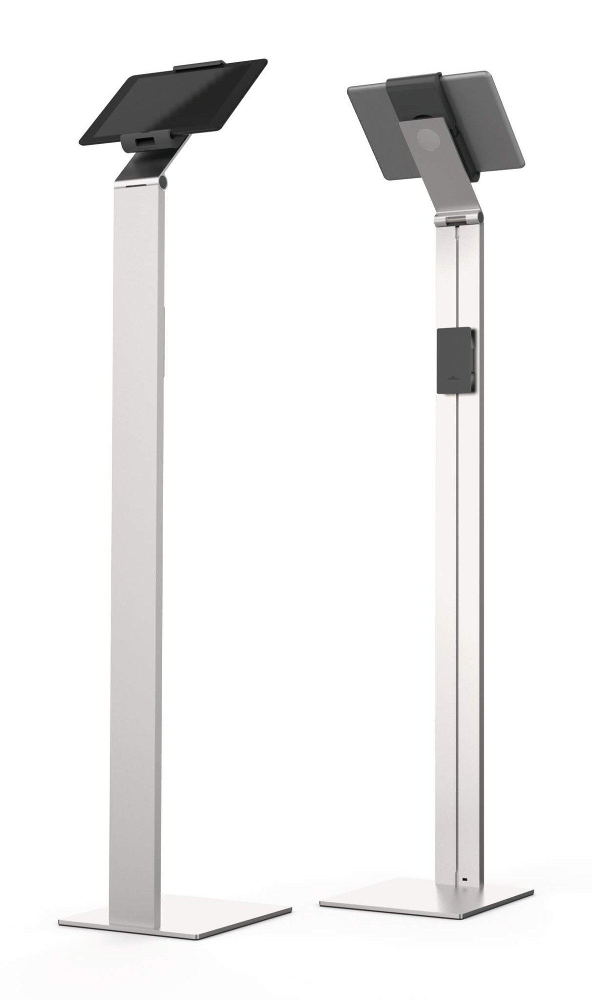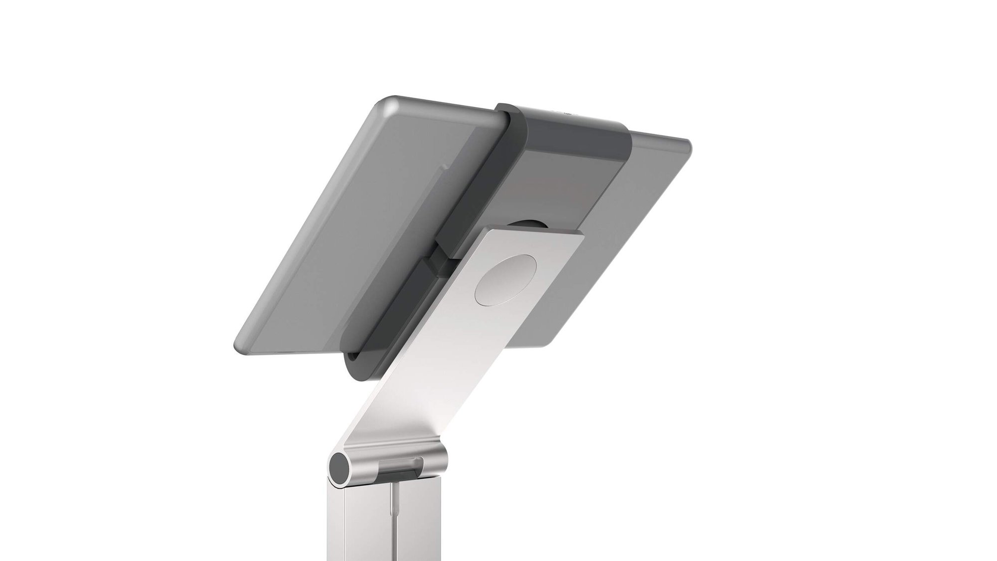 A modern and stylish tablet holder in Silver which is perfect for any working environment. The tablet holder securely holds tablets from 7 to 13" and includes an anti-theft system to prevent unauthorised removal of the tablet. The clamp securely holds the tablet in place and is rotatable 360° for use in both portrait and landscape format.<br><br>The clamp can also be tilted 0° to 88° for Compatiblelete flexibility. The stand is made from sheet steel and aluminium provides stability when using the device. Perfect for use in hotels