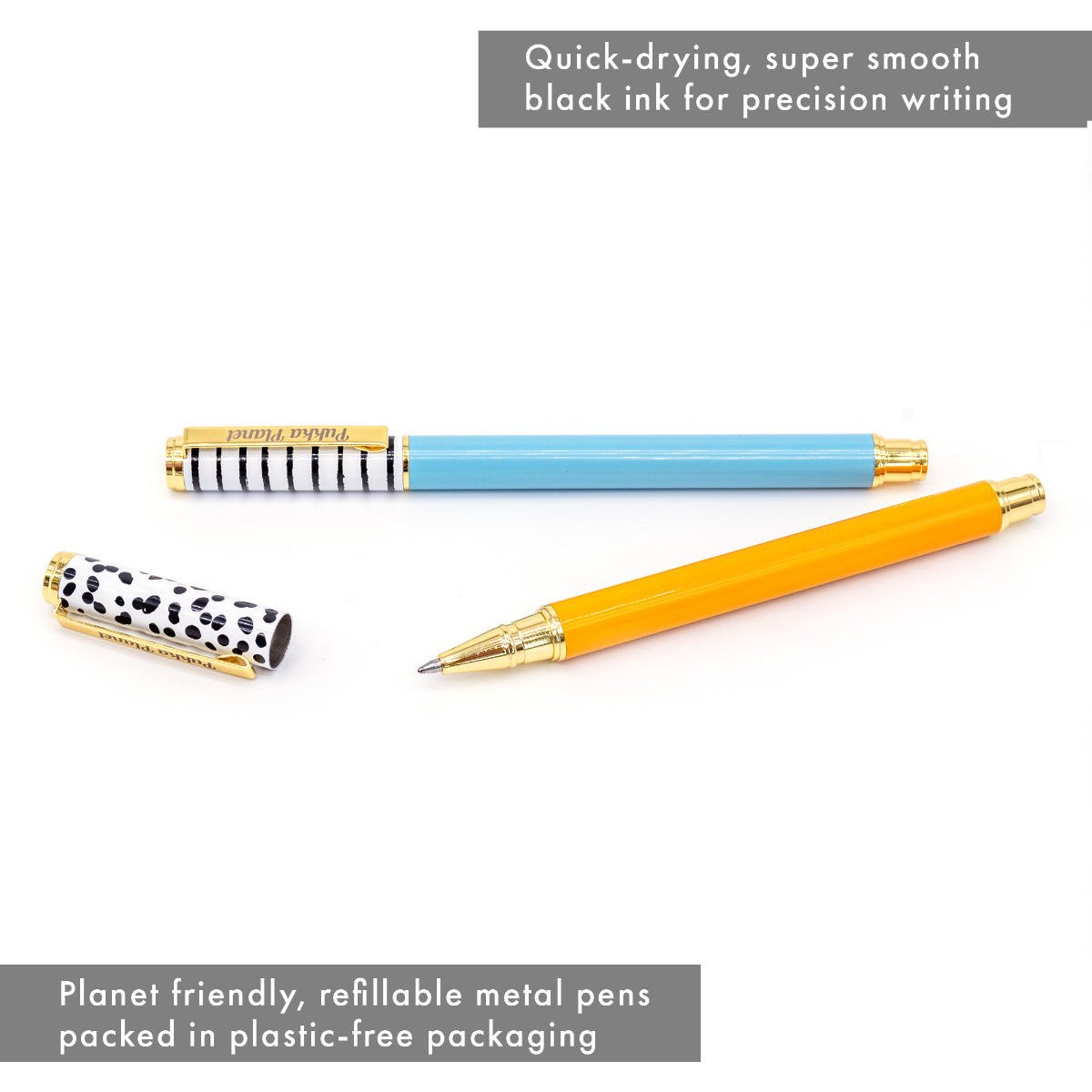 Pukka Planet brings you a variety of bold and brilliant designs, which aim to add an element of excitement to your eco-friendly lifestyle. We’re in this for the long run, so let’s protect the pukking planet together! <br>Compatiblelete your Pukka Planet stationery collection with our bold, and colourful pens. Treat yourself to a pen that will glide across your page and create an enjoyable writing experience, but won't harm the planet in the process. <br>Our Pukka Planet metal gel pens are planet-friendly, include vegan ink, and have plastic-free outer packaging that is 100% recyclable. Each gel pen has black ink, debossed branding and a gold metal clip so you can easily attach it to your favourite notebook. <br>So, spread the word and help protect the planet by choosing one of our Pukka Planet products.