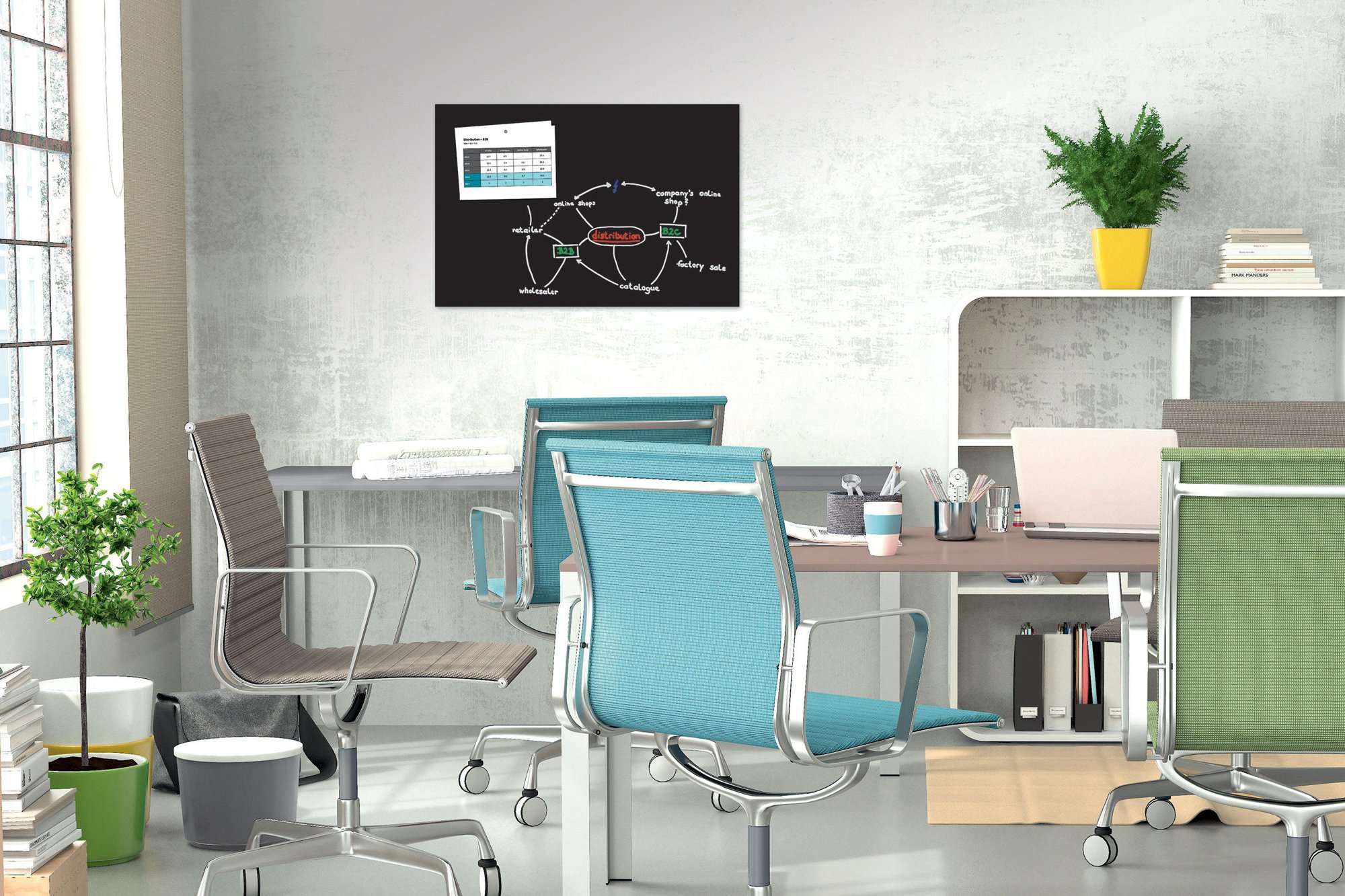 This is more than just any magnetic glass board: it is a prestigious designer piece that can€™t fail to impress you or any guest. The magnetic glass board in 91 x 60cm format in Black is the perfect setting for your ideas and eye-catching on any wall. The magnetic glass board without a frame has a free-floating, clean look with plenty of space for your thoughts, drafts and plans. The classy, multifunctional glass surface can be written on with glass board markers and whiteboard markers, is magnetic in combination with extra-strong neodymium magnets and can be cleaned with a dry or damp cloth. The attachable storage tray and pen pot from the accessories range are ideal for storing accessories.