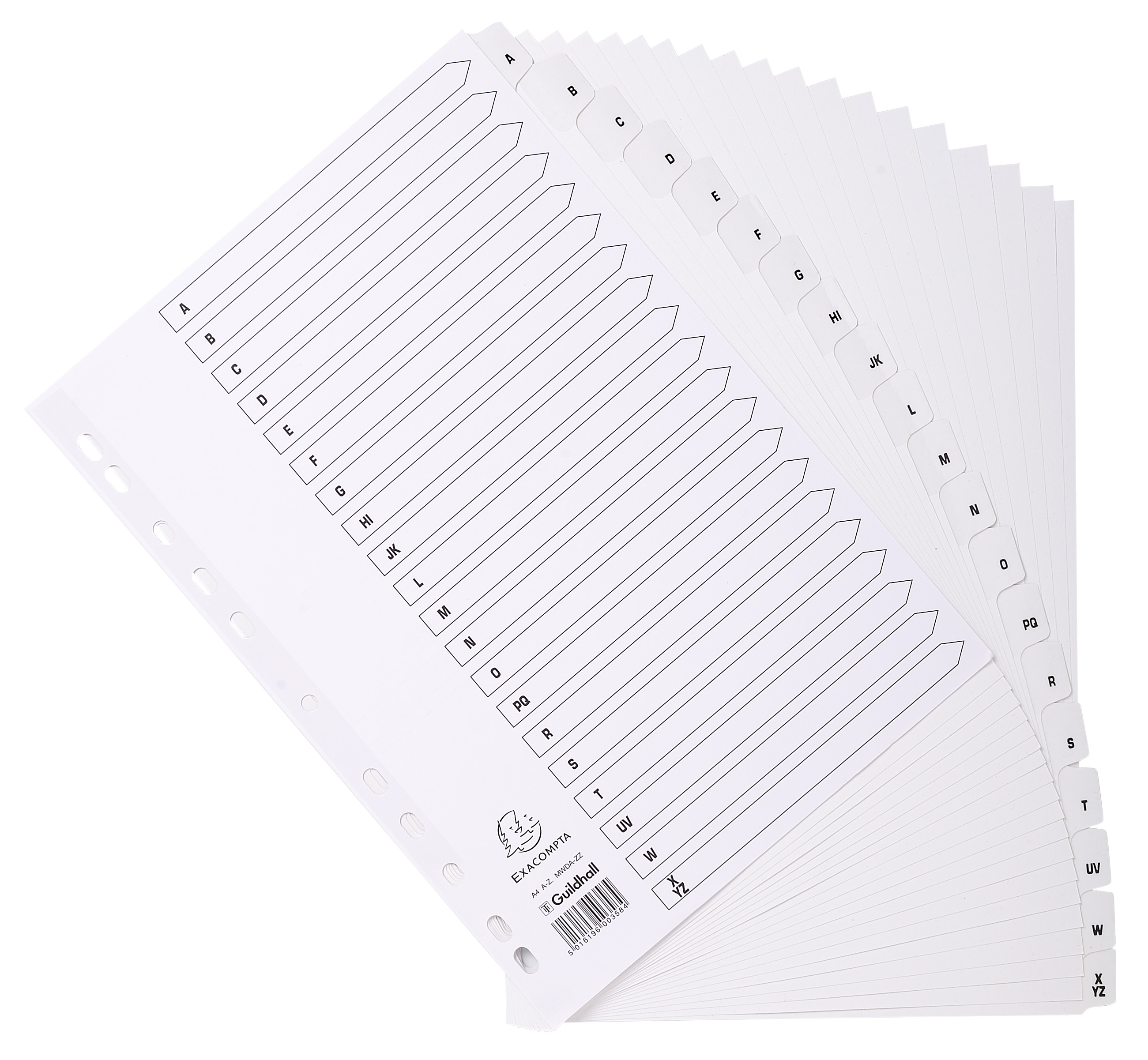 Made from 160gsm white card with white reinforced plastic tabs. The indices are A4 in size and are pre printed with A-Z.