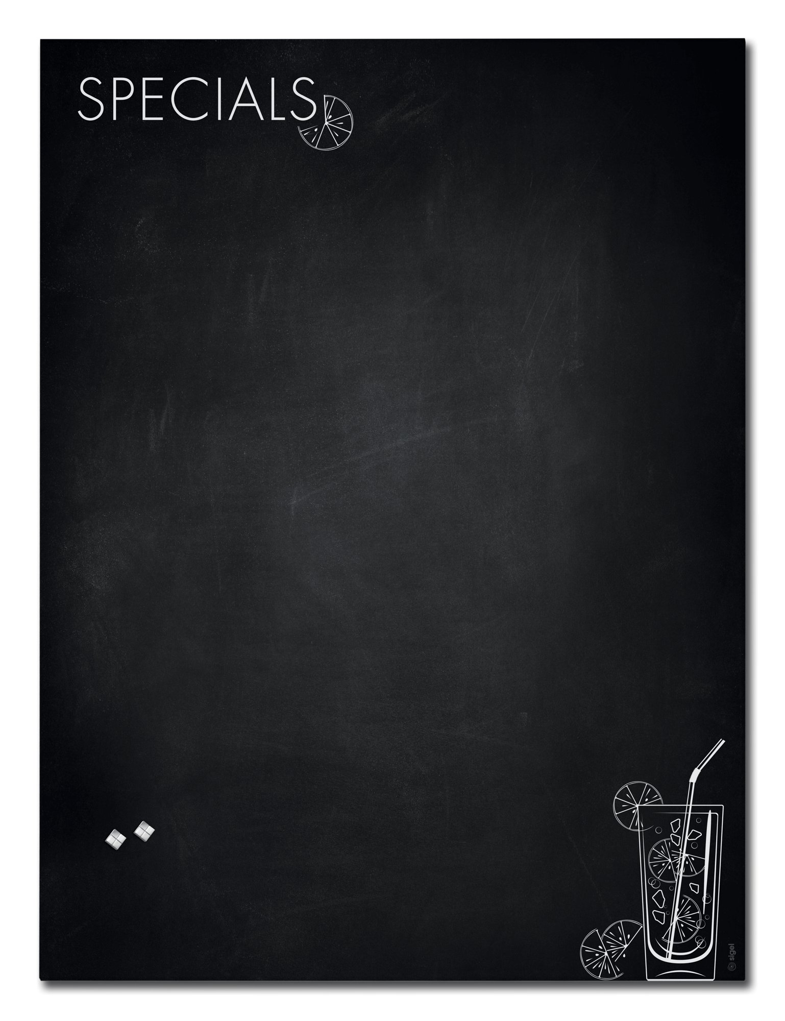 This contemporary Artverum magnetic glass board can be written on, making it ideal for the striking presentation of food and beverages, menus or specials in any restaurant or catering establishment. The matt magnetic glass board in the 90 x 120 cm format, Happy Hour design in black, white is bound to impress due to its colour brilliance and absolute sharpness of detail. The matt surface minimises glare and there is practically no reflection from any angle, even in difficult lighting conditions.<br><br>Box contents: 1x Magnetic glass board, screws, anchors for solid walls, mounting instructions incl. drilling template, 2 extra-strong SuperDym magnets GL705 (silver, cube design)