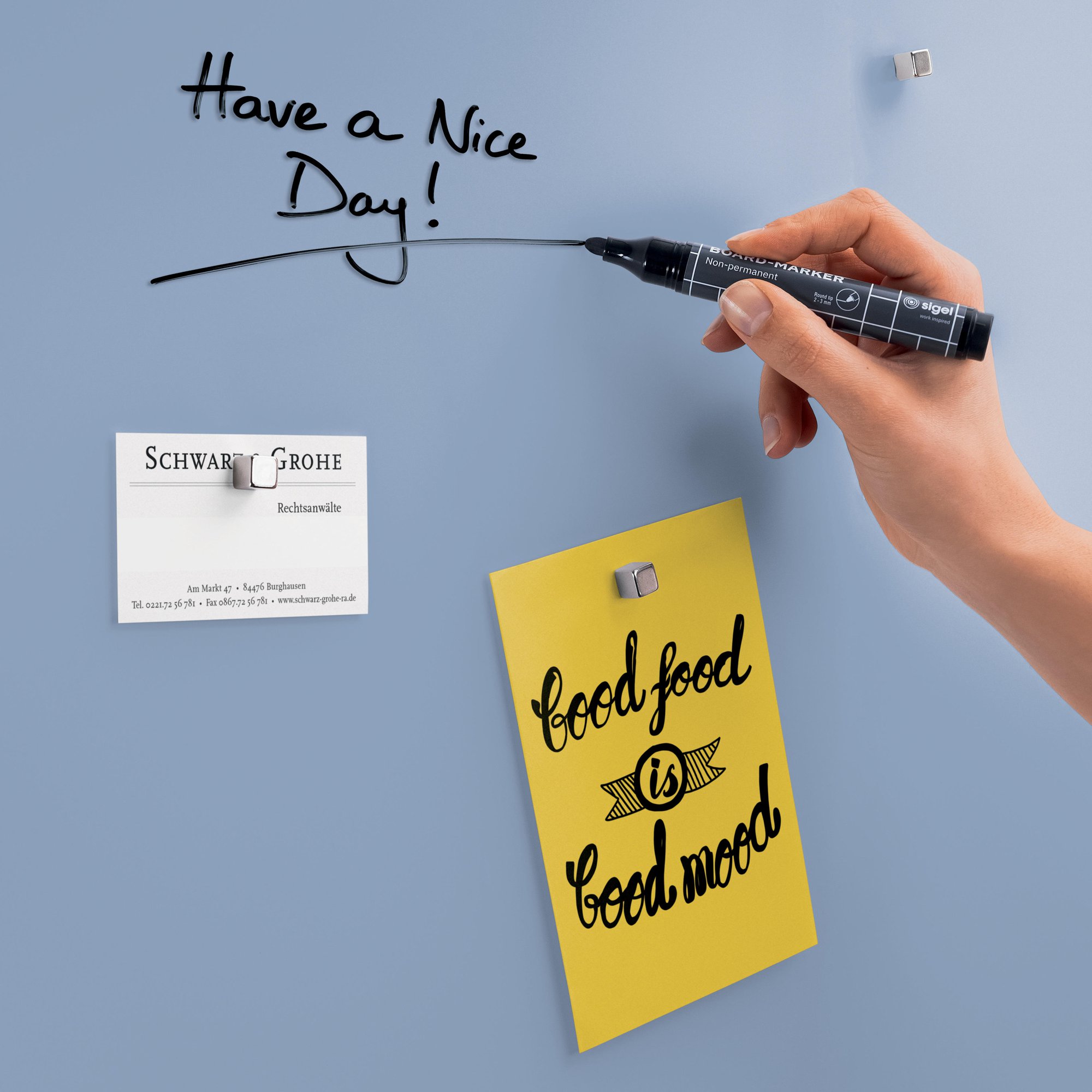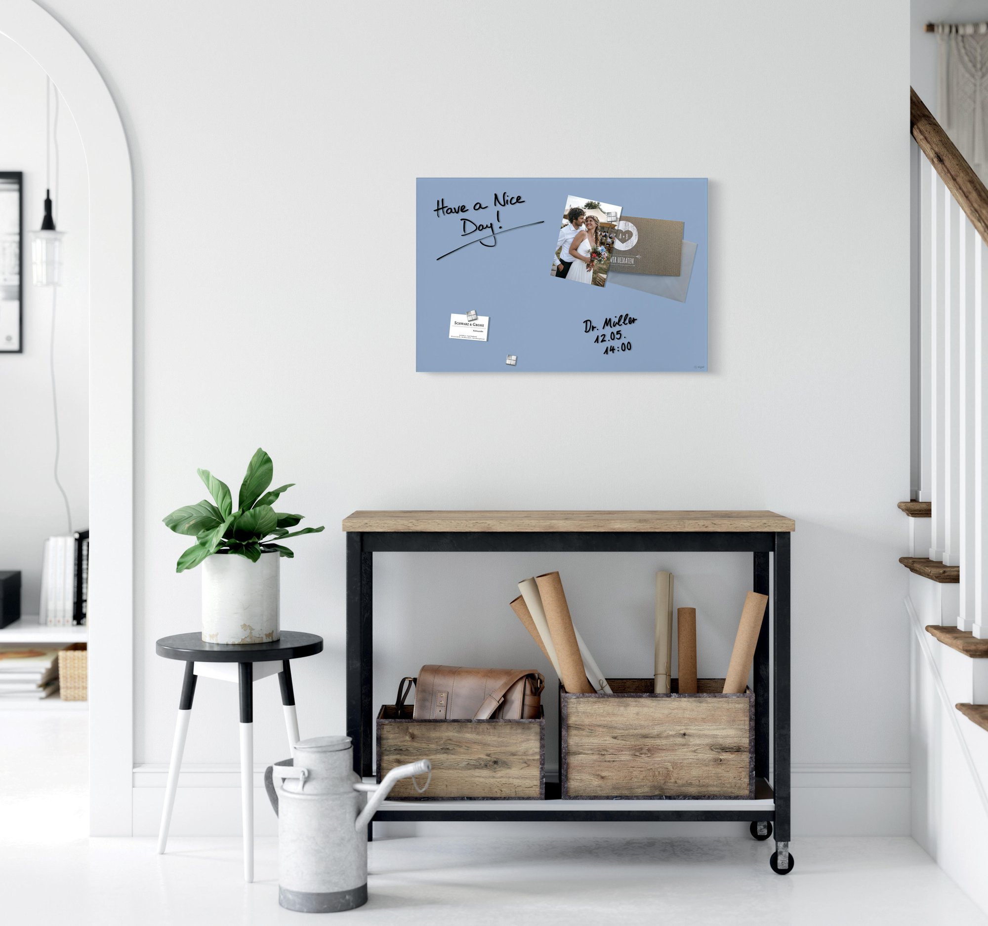 The Artverum magnetic glass board with its writable surface is a must-have in any home office as a modern alternative to a pinboard or classic whiteboard. Give free rein to your ideas: use the magnetic glass board to clearly list your to dos and visualise your ideas so you never lose track. Magnetic board in the 60 x 40 cm format in pastel blue with minimal glare or reflection.<br><br>Box contents: 1x Magnetic Glass Board, screws, anchors for solid walls, mounting instructions incl. drilling template, 3 extra-strong SuperDym magnets GL705 (silver, cube design)