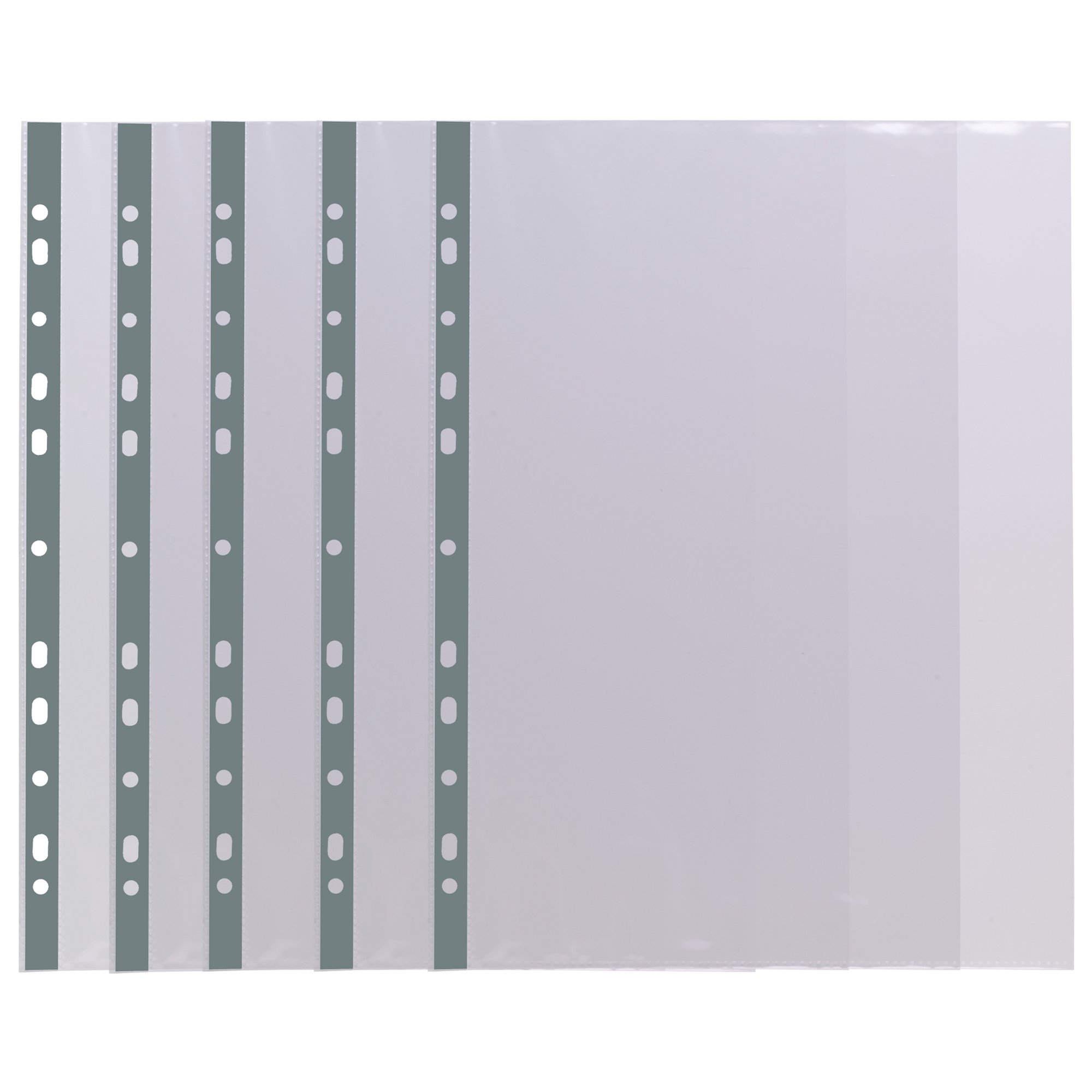 Strong 90 micron strength wallets, ideal for home, office and professional use. These pockets securely hold A4 documents. 25 pockets per single pack. Glass clear visibility with smooth finish and superior strength. Reinforced (grey) multi-punched spine for universal filing. Acid free and copy safe. Responsibly sourced materials and responsibly produced. Made from 100% recycled materials, product and packaging both 100% recyclable.