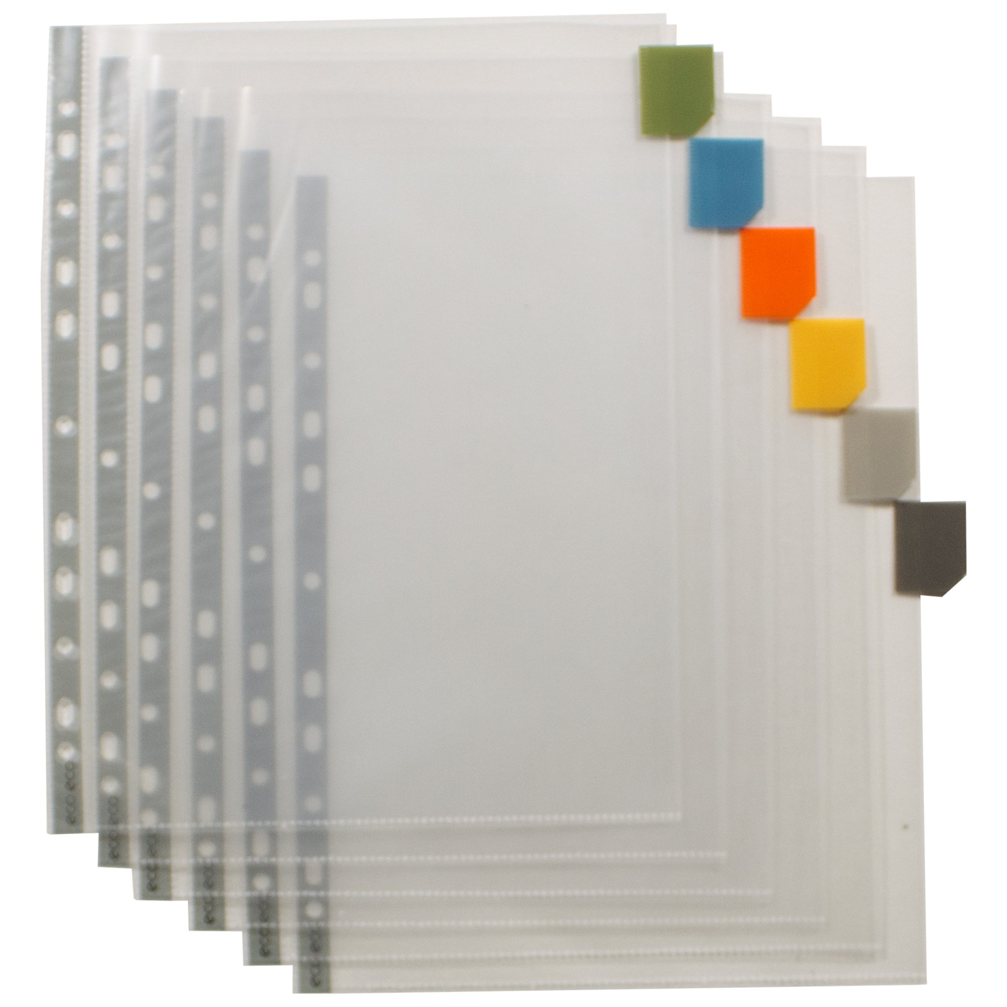 Strong 90 micron strength wallets, ideal for home, office and professional use. These pockets securely hold A4 documents and have coloured indexed tabs for easy identification. Each tab can be personalised with the white card which is included. 12 pockets per single pack. Glass clear visibility with smooth finish and superior strength. Reinforced (grey) multi-punched spine for universal filing. Acid free and copy safe. Responsibly sourced materials and responsibly produced. Made from 100% recycled materials, product and packaging both 100% recyclable.