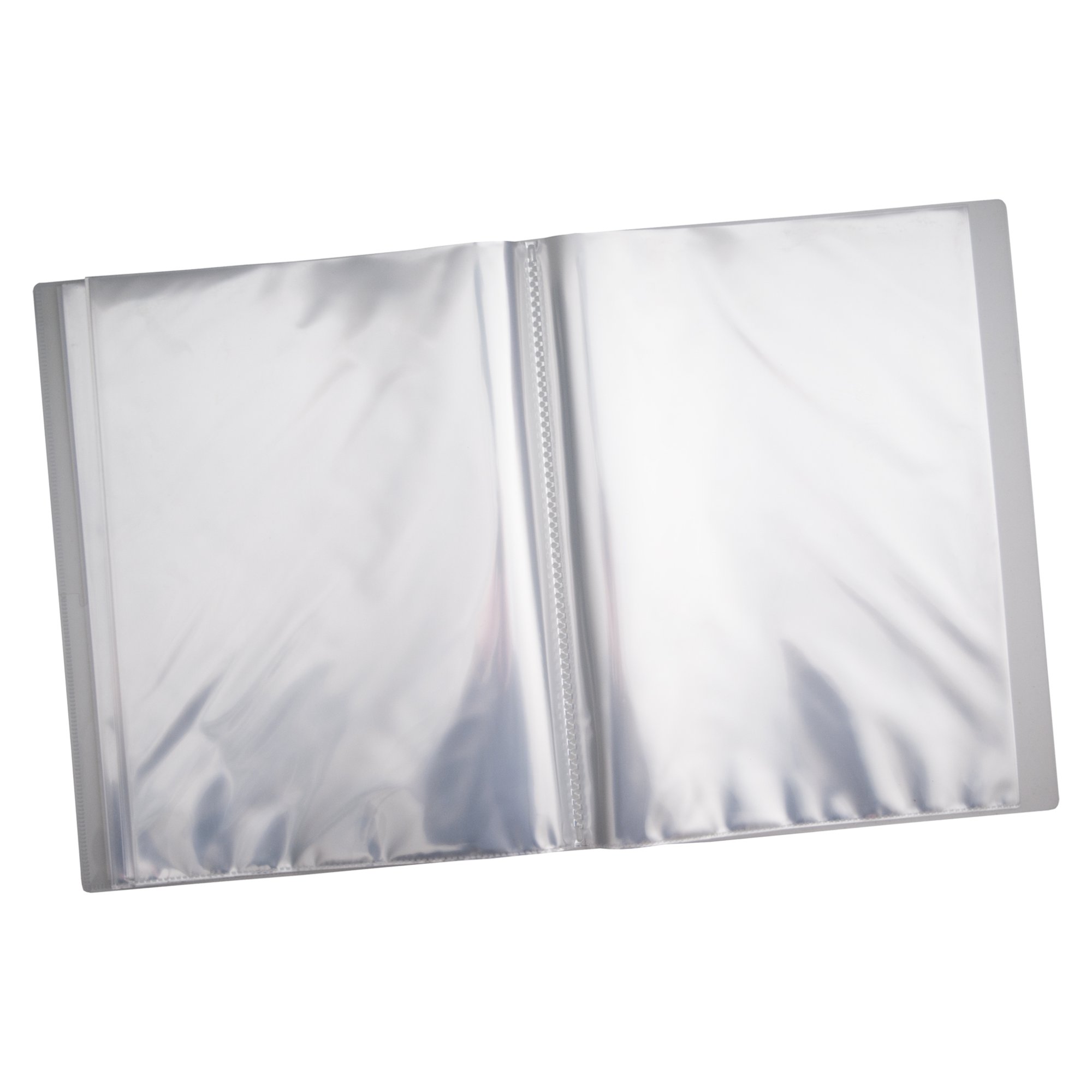 Strong clear 600 micron cover display book with clear 160 micron A4 size sleeve on front cover for personalisation and presentation. Clear additional storage pocket featured inside of front cover to house loose items and documents. A total of 20 pages (40 sides to view) securely bound for optimum and multi-purpose filing. 50 micron pages are acid free, smooth, glass clear and copy safe. These pages securely hold A4 documents. Responsibly sourced materials and responsibly produced. Made from 50% recycled materials, product and packaging both 100% recyclable.
