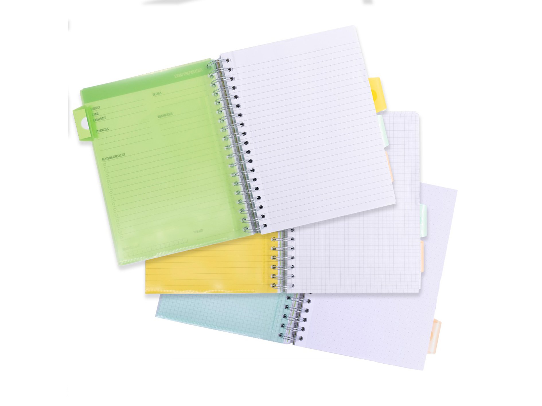 Introducing the ultimate study book designed to enhance your learning and boost your academic success. Packed with a variety of useful tools and features, our study book is your key to effective studying and efficient revision. The study book also has 4 repositionable, colour-coded dividers which can be used to separate subjects, topics, or classes, perfect for organising study notes. It includes 40 sheets of lined, squared, and dotted paper, catering to different note-taking preferences. Additionally, it includes 5 sheets of colour-coded perforated revision cards, allowing you to quickly review keywords and information. Lastly, the study book is made with 80 GSM recycled paper. By choosing this product, you're investing in your academic success and making an eco-friendly choice.