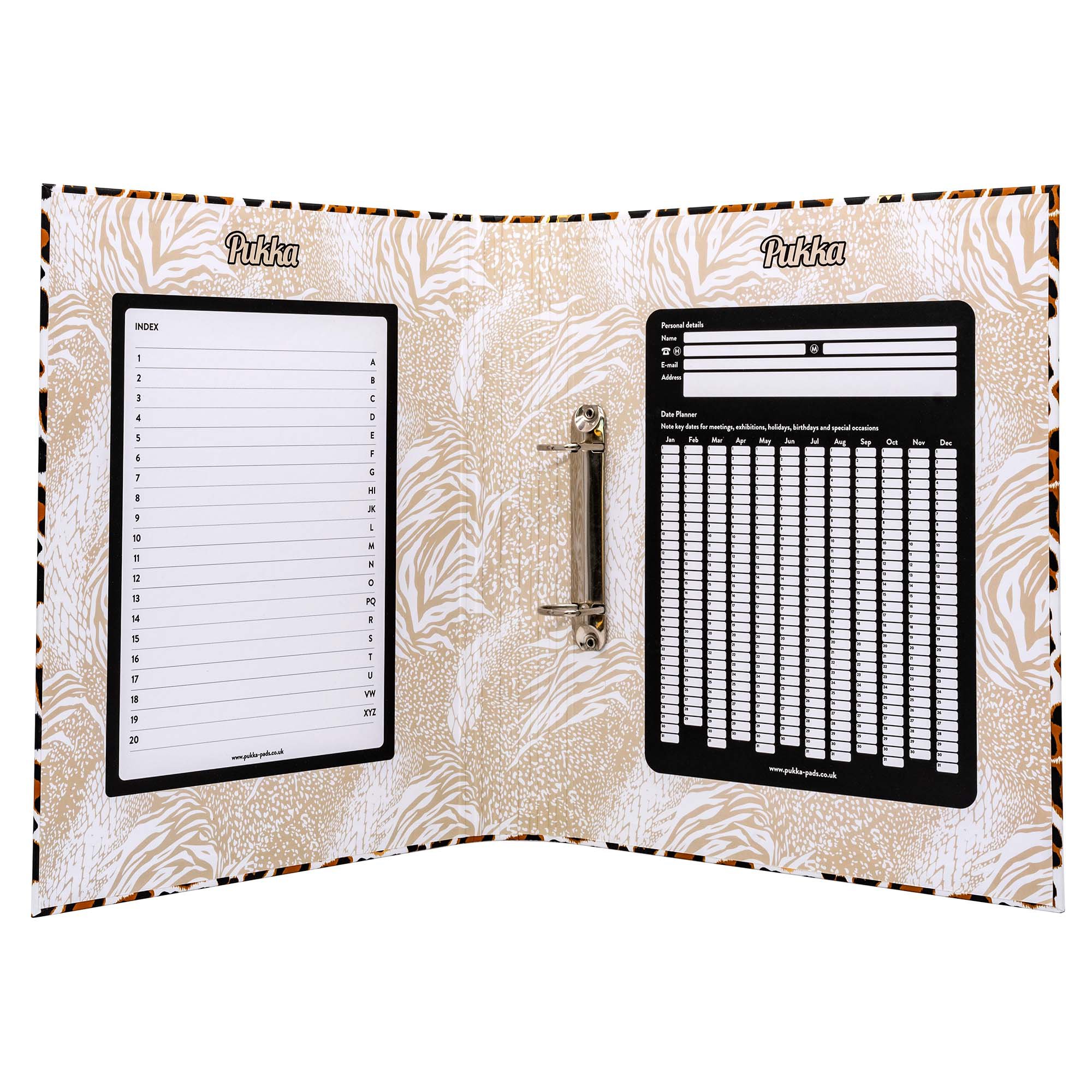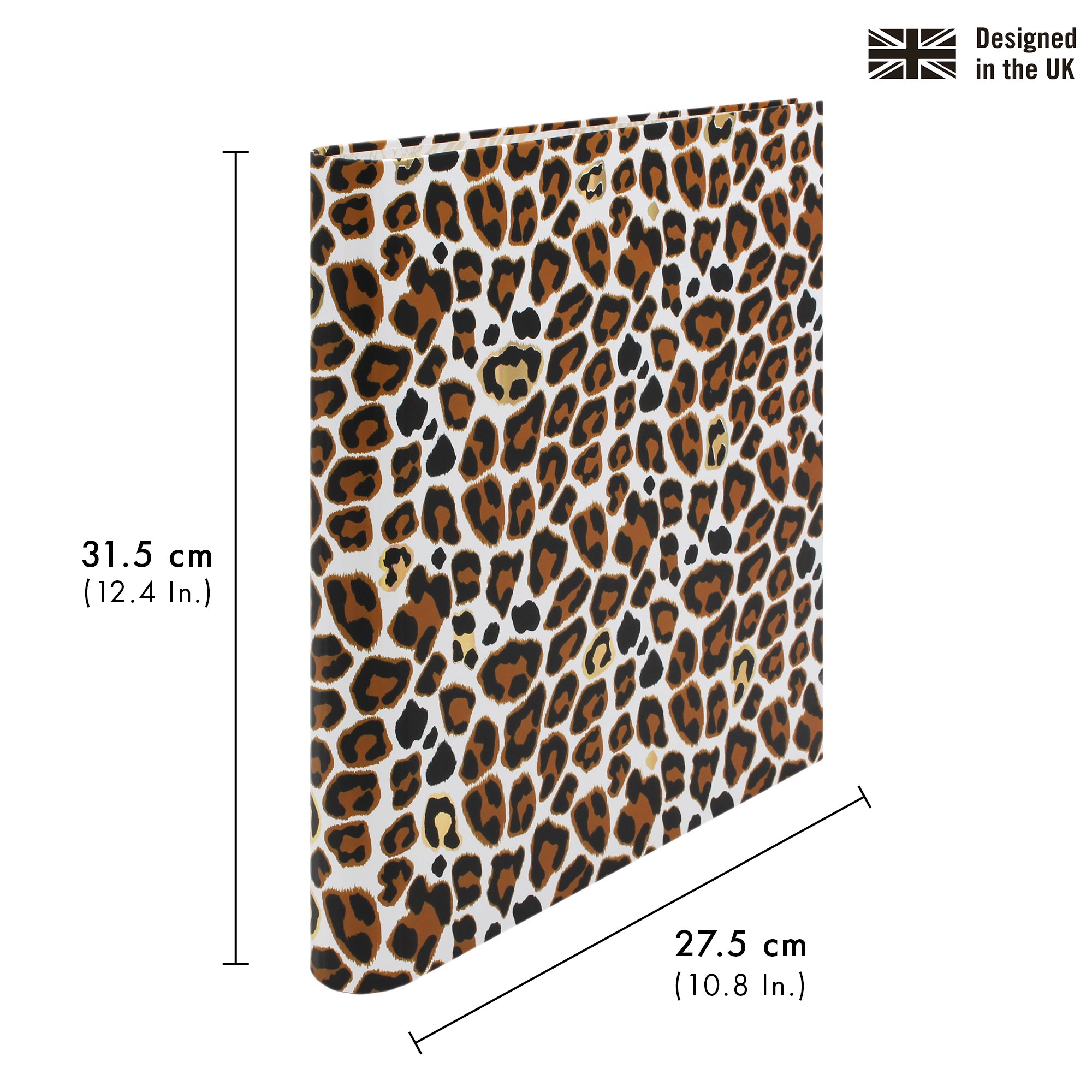 Release your inner wild side with our brand new range of fierce animal print stationery. Our Wild A4 rollbound file is ideal for filing and storing A4 documents and papers securely. The filing system ensures that your workspace is clutter-free and still looks great! The Wild rollbound ring binder measures 275mm x 315mm and is perfect for storing A4 documents like school revision notes or work files. It also features a standard D-ring mechanism and includes a pre-loaded 5-part Wild divider set. The pre-loaded 5 assorted subject dividers are excellent for organising your paperwork and projects. They are made from 250GSM board and are 11-hole punched and are already loaded into the Wild leopard print ring binder. Our Wild range would be perfect as a gift for a stationery lover or why not treat yourself, €˜cause why not?