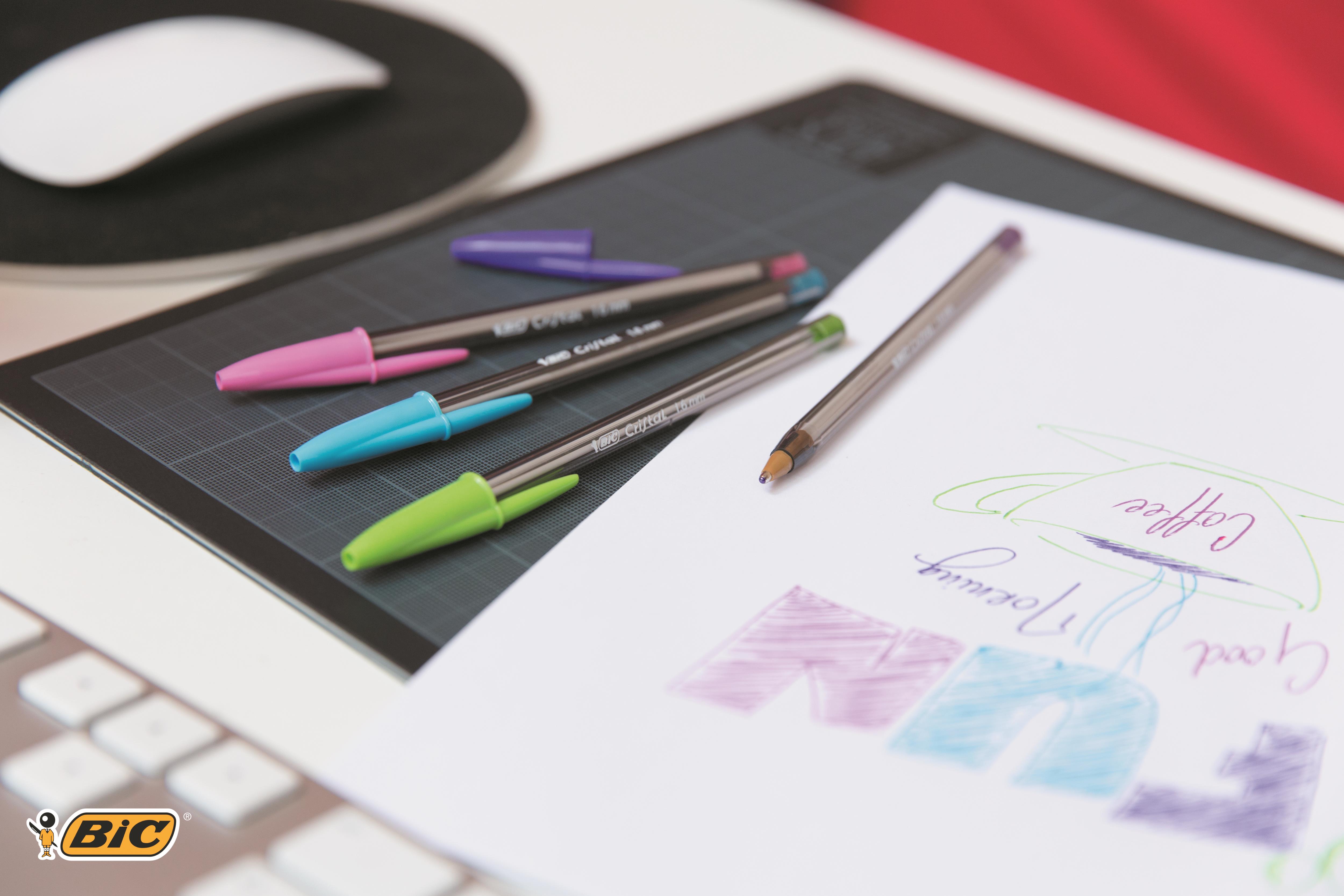 BIC Cristal Fun is a large-point ballpoint pen in a range of exciting colours, making your school work much more stylish! Available in purple, they make it easier than ever to organise your workload and bring some personality to the page. With cap and end plugs that match the ink itself, it's quick and easy to find the colour you need! A smoked barrel also allows you to see when the ink level is running low.