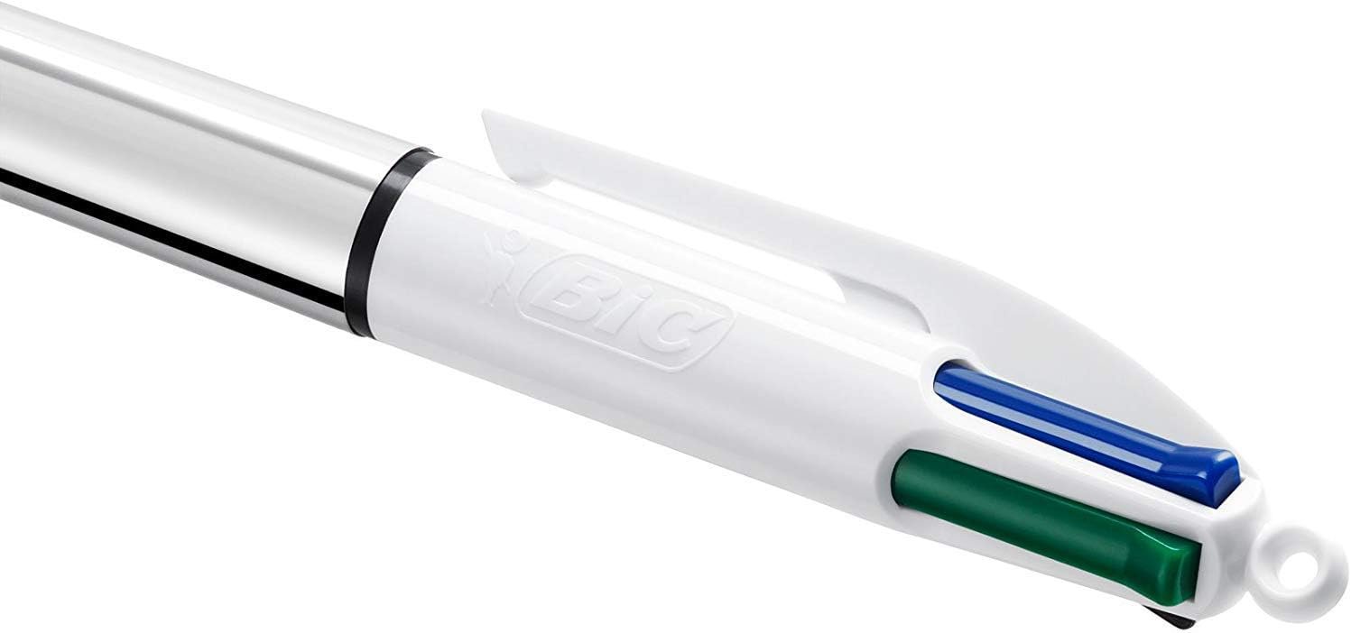 The BiC 4 Colours Shine Pen gives you 4 different fun colours of ink in the same pen, saving you space in your pencil case and time switching between colours!<br>Always keeping up with the times, the ballpoint pens in this pack are decked out in shiny metallic colours.<br>Includes medium 1.0 mm ballpoints in blue, red, green and black for crisp, precision, colourful writing.<br>A legendary design featuring an easy-grip round barrel, a side clip and the signature clicking buttons.