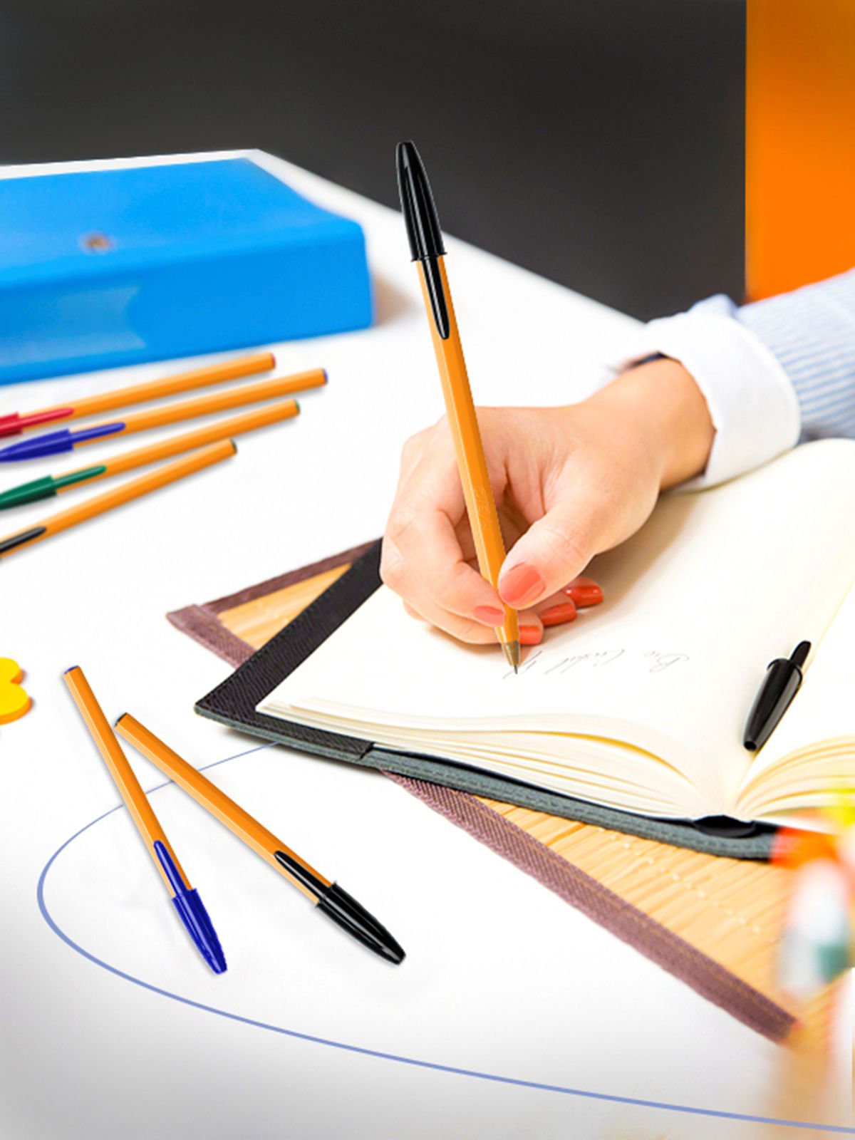 BIC Orange Original Fine ball pen gives you more accuracy when writing, thanks to its fine-point 0.8mm tip, making it better-suited to more precise jobs. As well as this, it's environmentally friendly as it has NF-accredited Environment Status and offers strong performance with 3,500 writing length on average*.<br>(*SGS test 2013/2014 - Average writing length for blue and black cartridges)