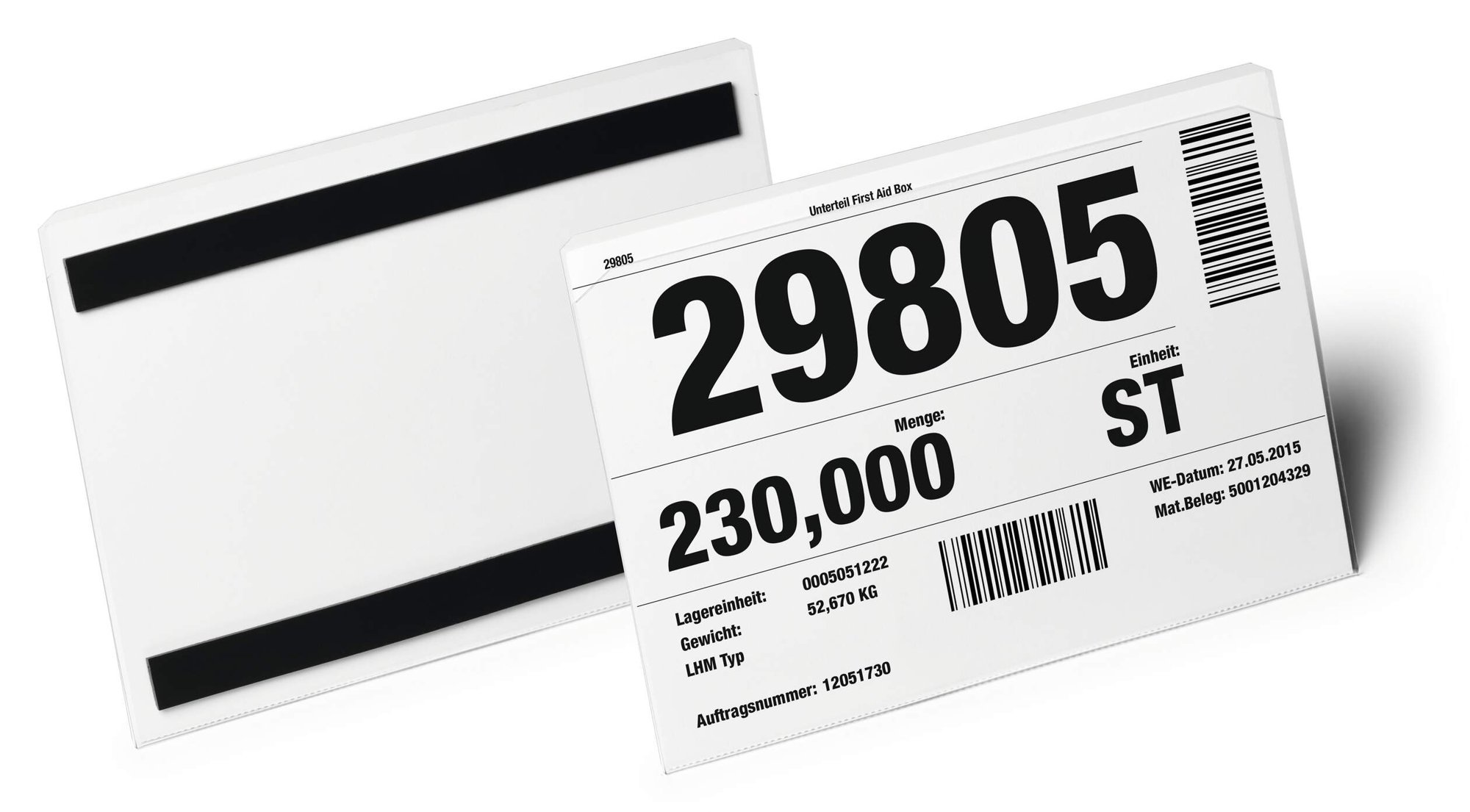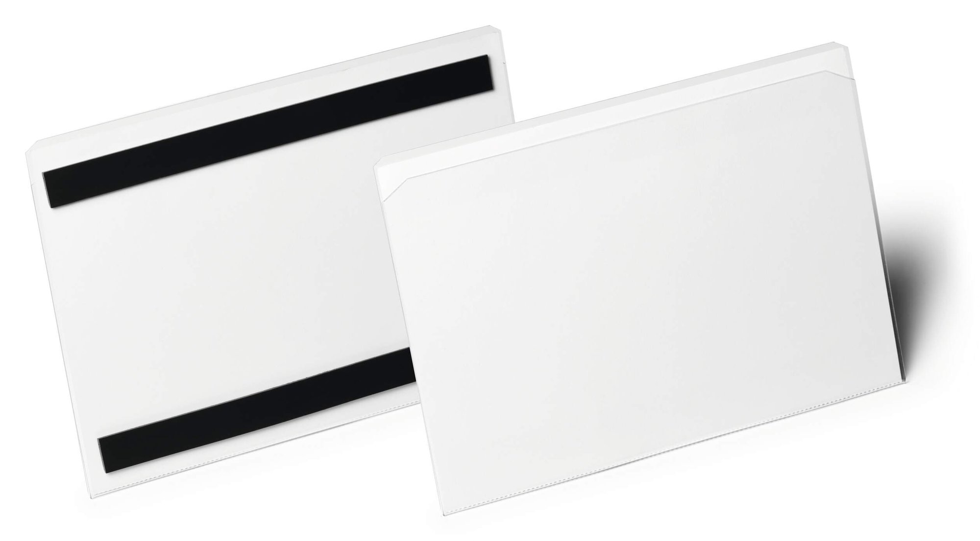 German designed heavy-duty ticket pockets with a strong magnetic attachment for busy warehouse and retail environments. Exchanging labels shouldn't be time consuming, our secure quick-exchange design makes it effortless.<br><br>The pouches are made of hard-wearing impact-resistant PET. They are anti-glare and fully scannable, making processes like picking and packing more efficient.<br><br>Insert dimensions: A5 landscape (210 x 148 mm)<br>Quantity: 10<br><br>Made in Europe, built to last