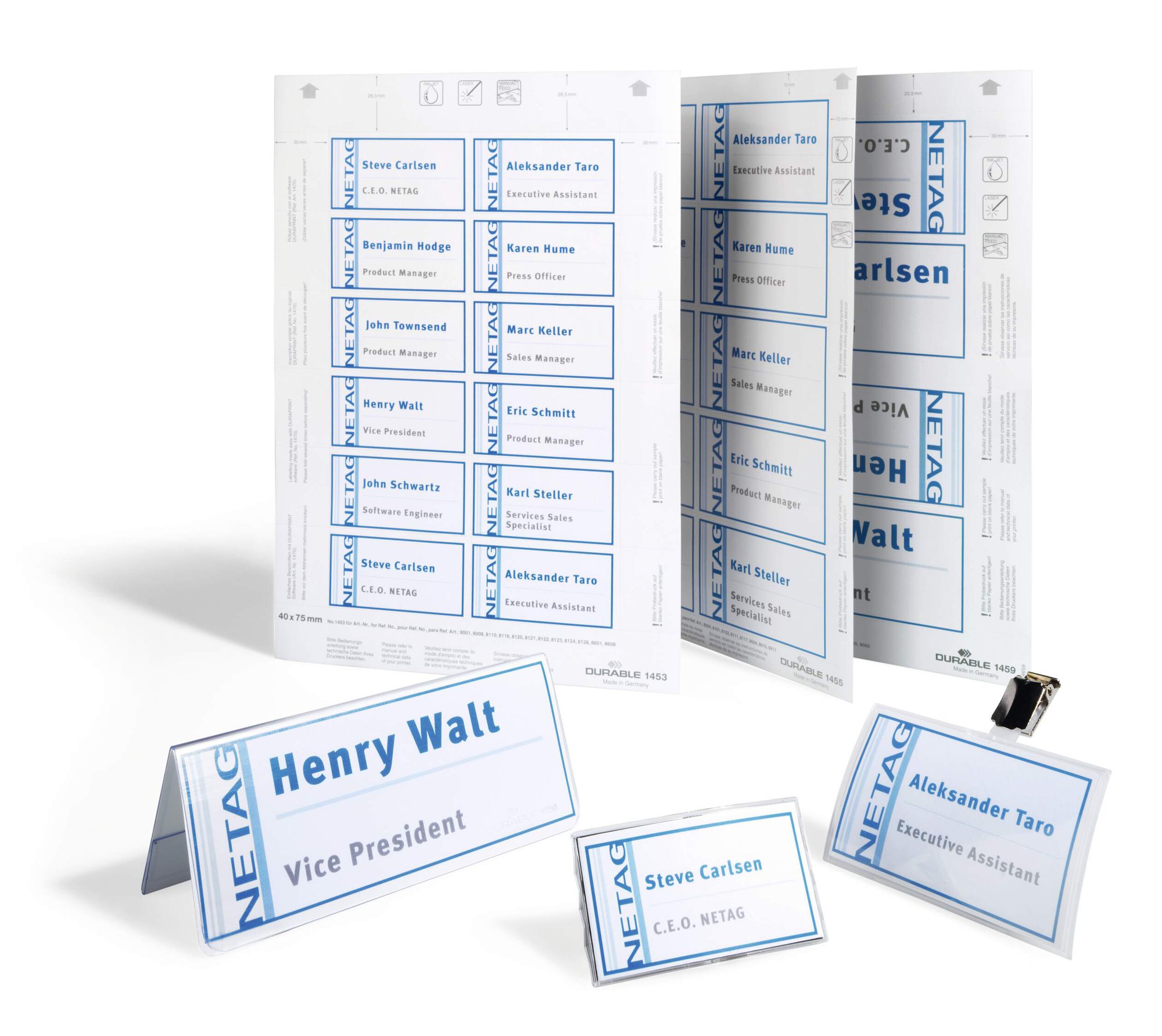 BADGEMAKER insert sheets are micro-perforated and made from high-quality 150 gsm PEFC-certified paper. They come from sustainably managed forests and are environmentally friendly in accordance with ISO 14021: 100% recyclable.<br><br>Inserts are Compatible with laser and inkjet printers and can be printed double sided.<br><br>Perfect for DURABLE products # 803319, 805019, and 805419<br><br>Sheet size: A4<br>Pack size: 40 inserts<br>Badge size: 61 x 150 mm<br><br>Made in Germany
