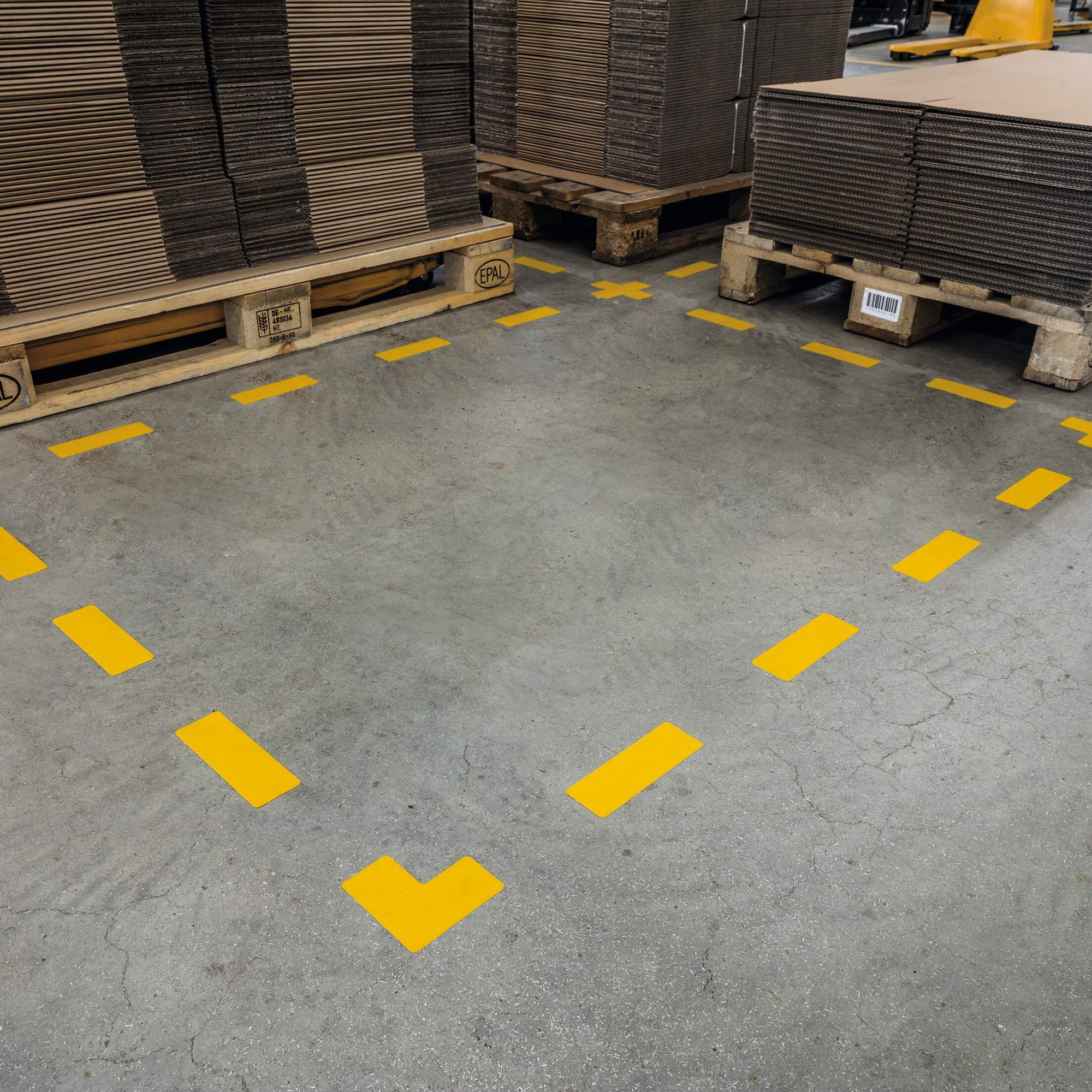 A range of permanent adhesive indoor floor marking shapes perfect for indicating dangerous areas, storage spaces, and walkways, etc.<br><br>They are abrasion resistant, hard-wearing and feature R9 slip resistance.<br><br>Technical standards: ASR A1.5/1.2 (Floors)<br>Self-adhesive type: Permanent <br>Colour: RAL 1003 signal yellow<br>Slip resistance: R9 (DIN 51130)<br>Width: 100 mm<br>Length: 150 mm<br>Quantity: 10<br><br>Designed in Germany. Made in the UK