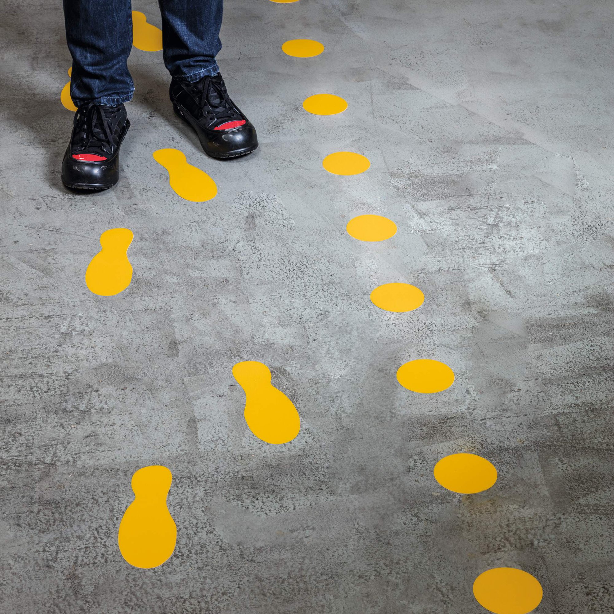A range of permanent adhesive indoor floor marking shapes perfect for indicating dangerous areas, storage spaces, walkways, etc.<br><br>They are abrasion resistant, hard-wearing and feature R9 slip resistance.<br><br>Technical standards: ASR A1.5/1.2 (Floors)<br>Self-adhesive type: Permanent<br>Colour: RAL 1003 signal yellow<br>Slip resistance: R9 (DIN 51130)<br>Width: 100 mm<br>Length: 100 mm<br>Quantity: 10<br><br>Designed in Germany. Made in the UK