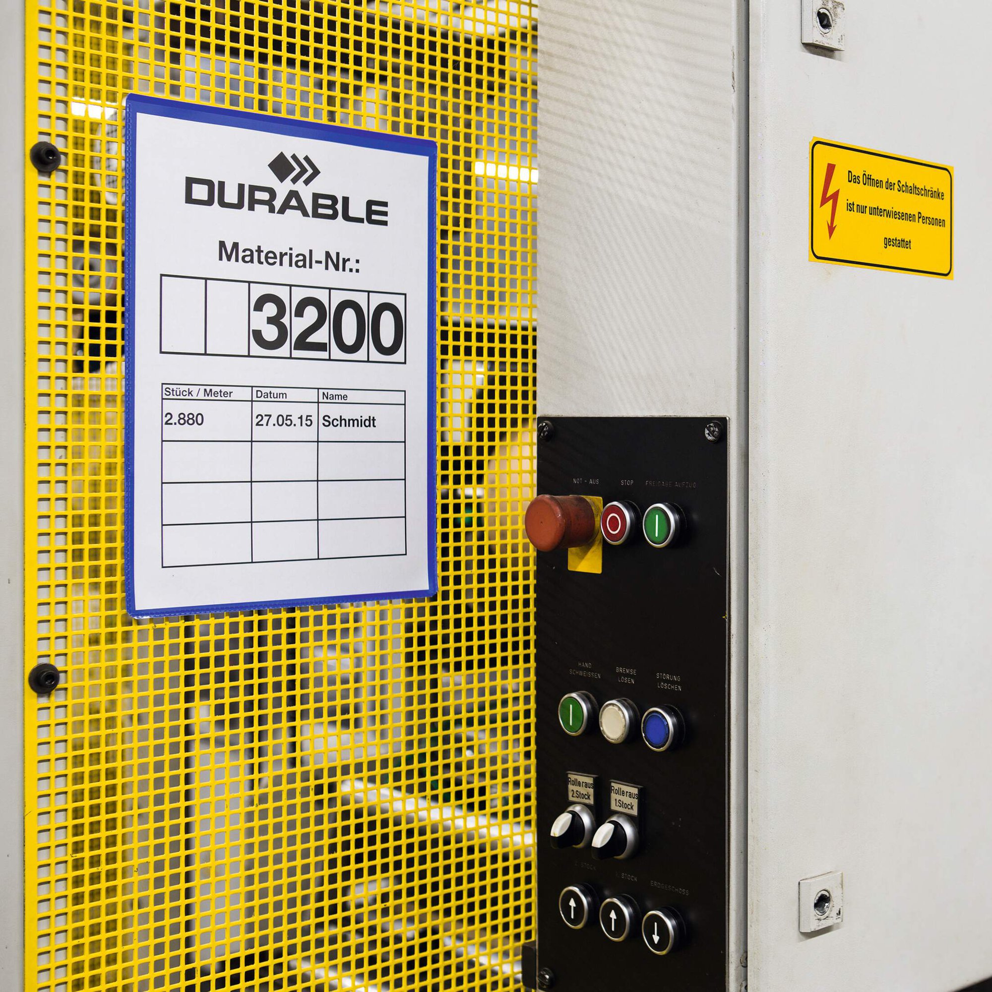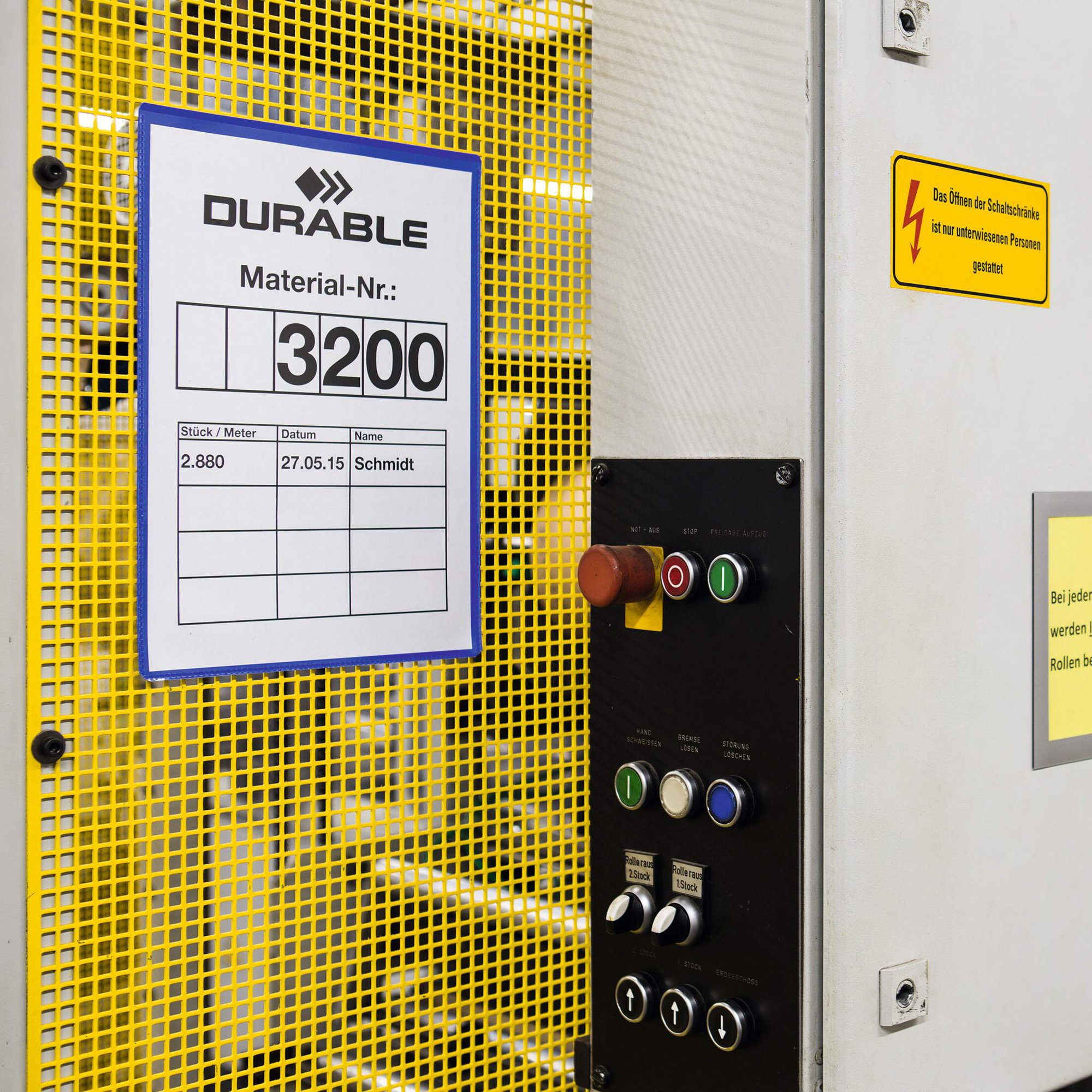 German designed heavy duty document pockets with two magnetic strips for use in warehouse and retail environments. The pouches are made out of hard-wearing tear resistant polypropylene for an extended product lifecycle.<br><br>The pockets are anti-glare and 100% QR and barcode reader friendly making processes like picking and packing more efficient.<br><br>Insert dimensions: A4<br>Quantity: 50<br><br>Made in Germany