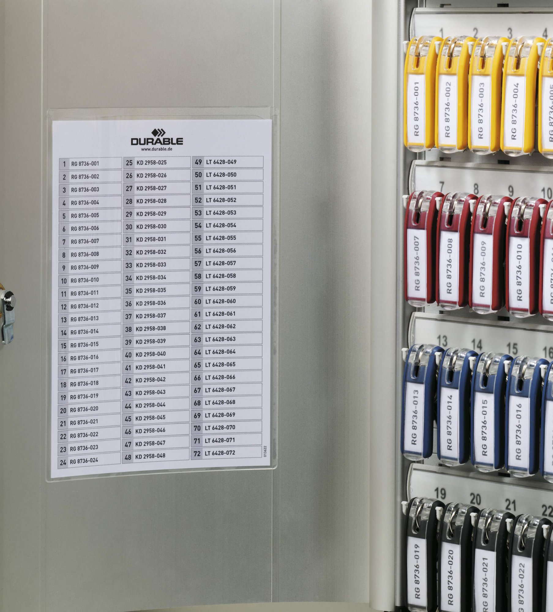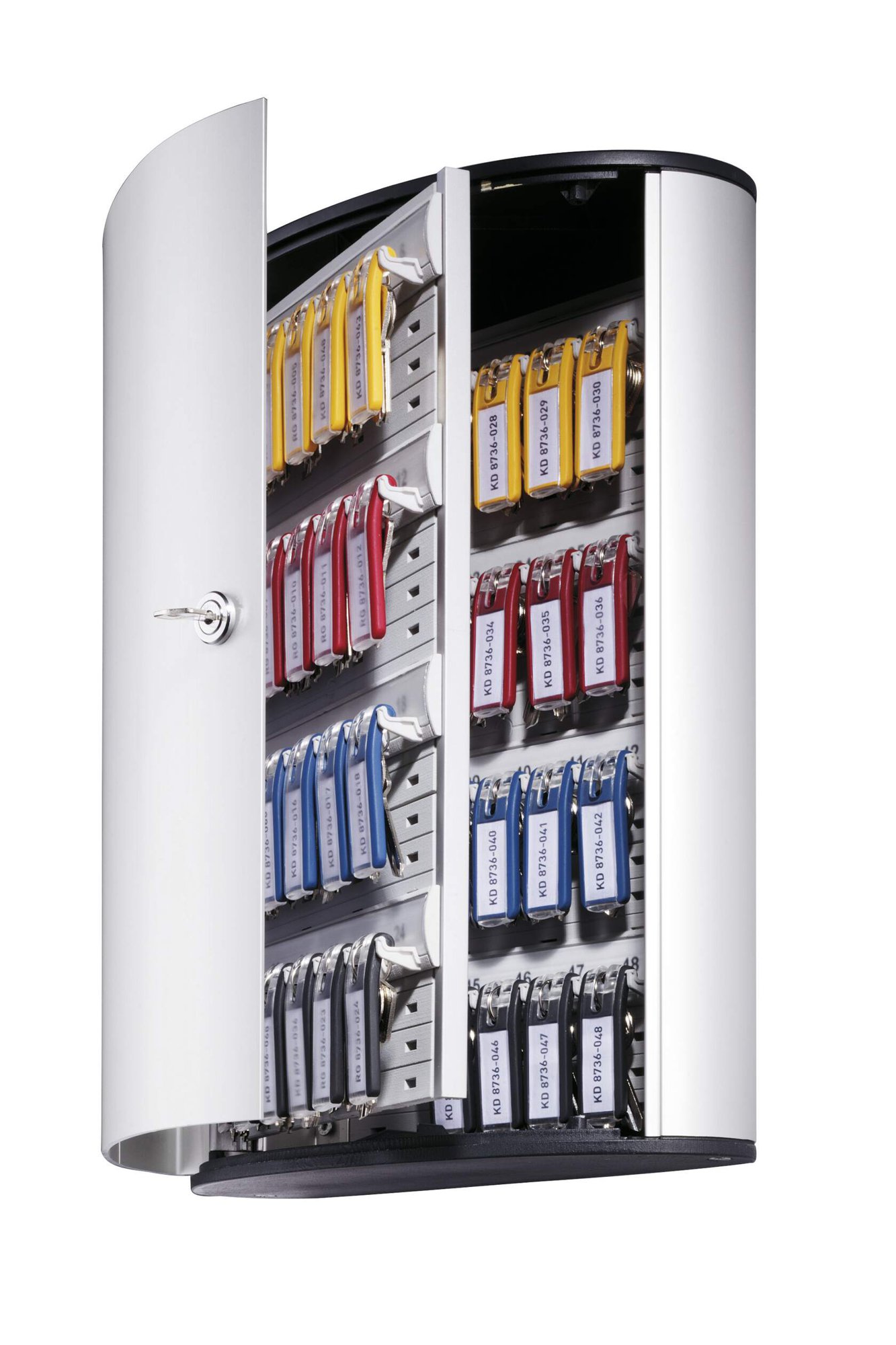 Thanks to the innovative design, the key clip plates are always visible, so keys are quickly and easily identified. Crafted from durable lightweight anodised aluminium, this key box offers a modern and sophisticated design to Compatiblelement any environment.<br><br>The cylinder lock ensures that only authorised individuals have access, providing an extra layer of security for your keys.<br><br>Made of 60% recycled materials, 100% recyclable and built in accordance with ISO 14021, a high standard for eco-friendly products.<br><br>Includes:<br><br>1X Aluminium key box 48<br>2X Lockbox access keys<br>1X Mounting kit (with screws and wall plugs)<br>6X Coloured key clips<br>1X Inscribable index sheet<br>1X Free DURAPRINT printing software<br><br>Specifications:<br><br>Capacity: 48 KEY CLIP key holders<br>Dimensions: 118 x 302 x 400 mm (L x W x H)<br><br>Designed in Germany and built to last
