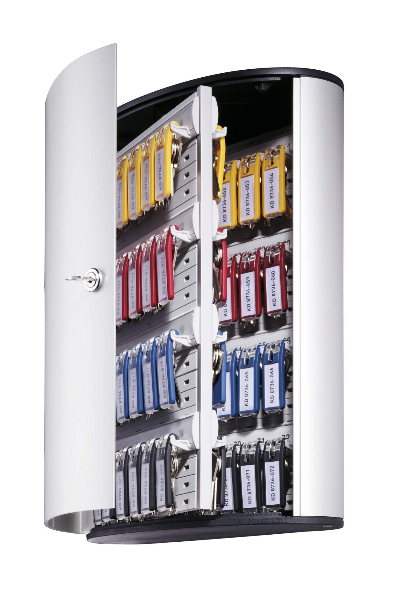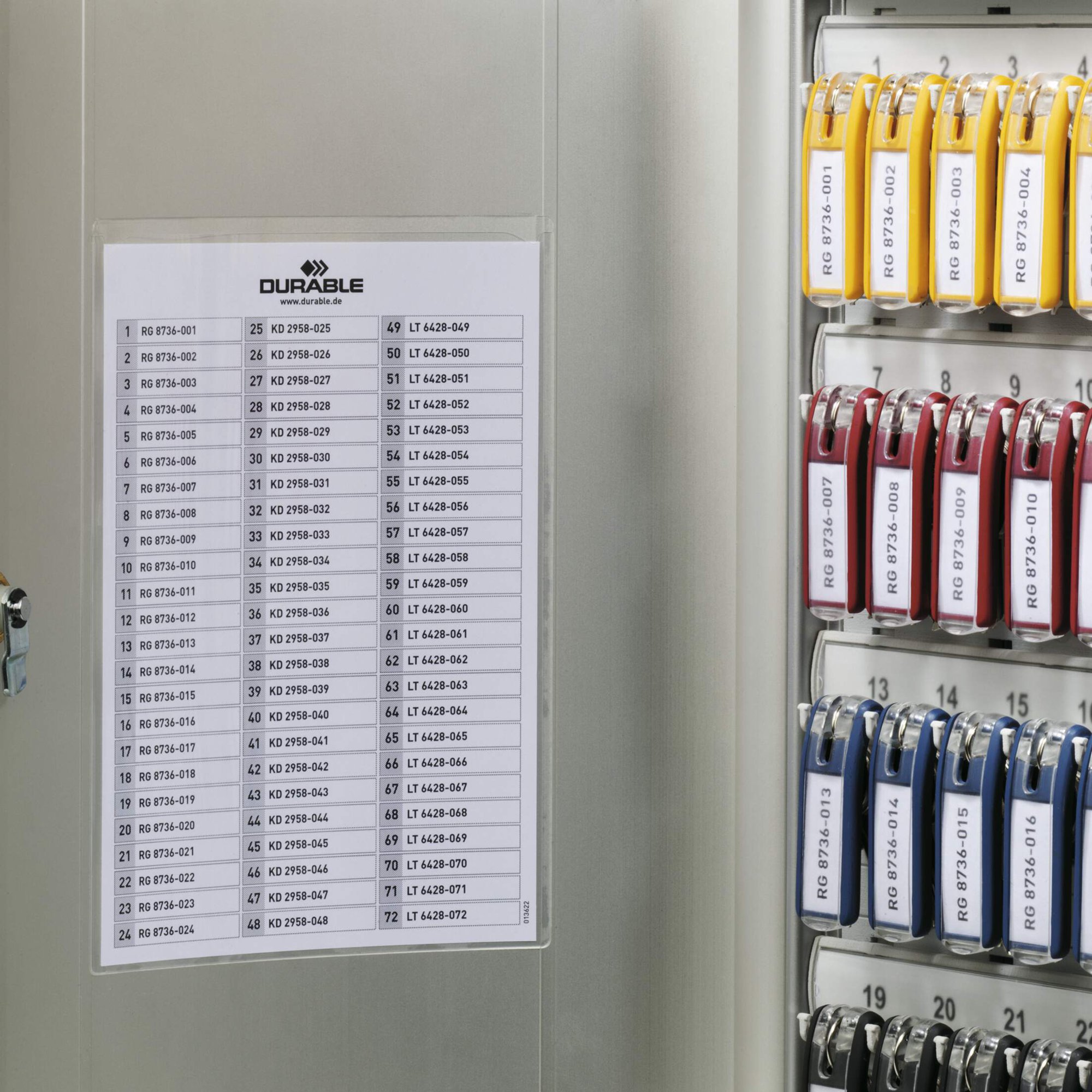 Thanks to the innovative design, the key clip plates are always visible, so keys are quickly and easily identified. Crafted from durable lightweight anodised aluminium, this key box offers a modern and sophisticated design to Compatiblelement any environment.<br><br>The cylinder lock ensures that only authorised individuals have access, providing an extra layer of security for your keys.<br><br>Made of 60% recycled materials, 100% recyclable and built in accordance with ISO 14021, a high standard for eco-friendly products.<br><br>Includes:<br><br>1X Key safe box 72<br>2X Lockbox access keys<br>1X Mounting kit (with screws and wall plugs)<br>6X Coloured key clips<br>1X Inscribable index sheet<br>1X Free DURAPRINT printing software<br><br>Specifications:<br><br>Capacity: 72 KEY CLIP key holders<br>Dimensions: 118 x 302 x 400 mm (L x W x H)<br><br>Designed in Germany and built to last