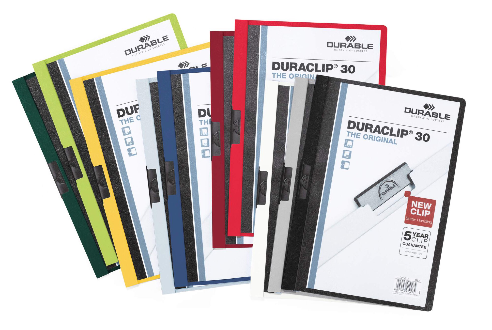 The original DURACLIP folder with a new clip design for smoother handling. It is ideal for protecting, organising and presenting un-punched documents. The design features a transparent anti-glare, anti-tear front cover and corrosion protected steel clip.<br><br>All our folders are built and designed in Germany to a high standard from premium quality plastics and undergo strict quality control. This ensures a great finish and extended product life cycle.<br><br>Provided with a 5 year manufacturer€™s clip guarantee.