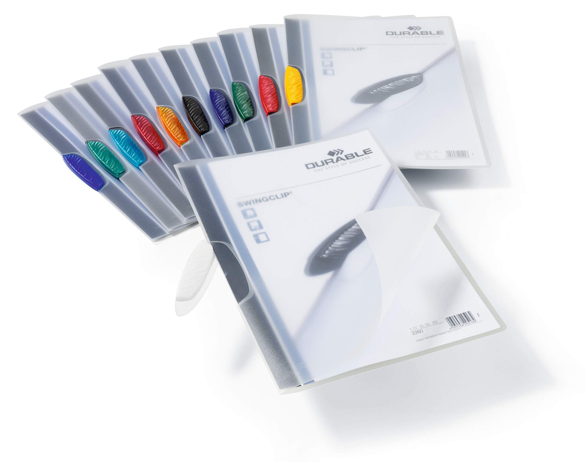 The Durable SWINGCLIP is made of translucent anti-glare, anti-tear polypropylene, one file is capable of securely holding and protecting 1-30 sheets of A4 paper.<br><br>There's no need to punch holes or staple your documents, simply swing the clip out, insert your documents and close the clip.<br><br>Environmentally friendly in accordance with ISO 14021: 100% recyclable