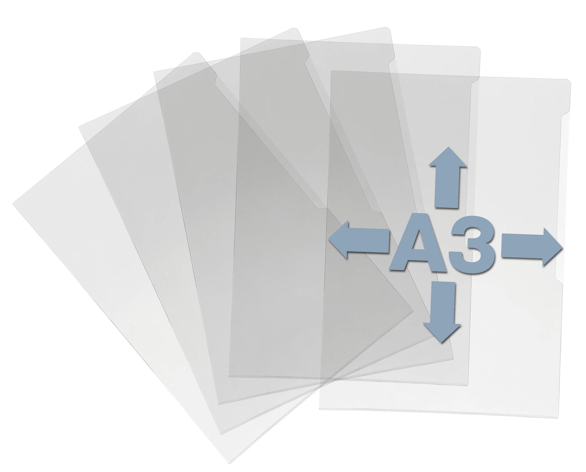 Keep your documents safe with our tear-resistant clear pockets. The high-friction design prevents slipping, while the anti-glare feature provides easy visibility.<br><br>Made with 100% recyclable materials and designed to last, these pockets are a sustainable and durable option for your document organisation.<br><br>Quantity: 10<br>Thickness 0.30 mm<br>Paper size: A3 (297 x 420)<br><br>Proudly made in Germany