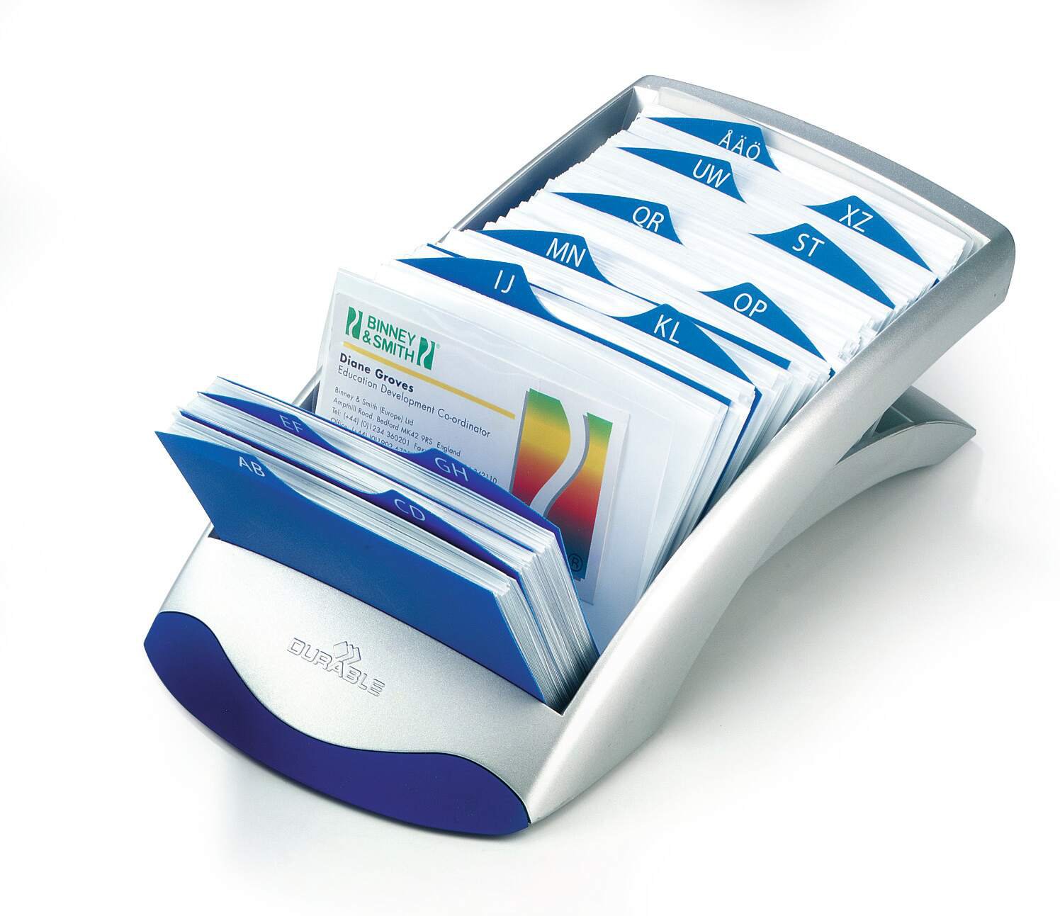 The VISIFIX DESK VEGAS is a stylish and high quality desktop business and address card index. It includes 100 crystal clear anti-tear business card pockets and a 25 part A-Z index. Perfect for keeping important contact information organised and close to hand.<br><br>The VISIFIX system is widely regarded as one of the best business card filing systems. Removal and insertion of cards and pockets is made easy thanks to the unique rail system.<br><br>Designed in Germany and environmentally friendly in accordance with ISO 14021<br><br>Capacity: 100 (200 double sided)<br>Cards: 104 x 72 mm<br>Dimensions: 131 x 67 x 245 mm