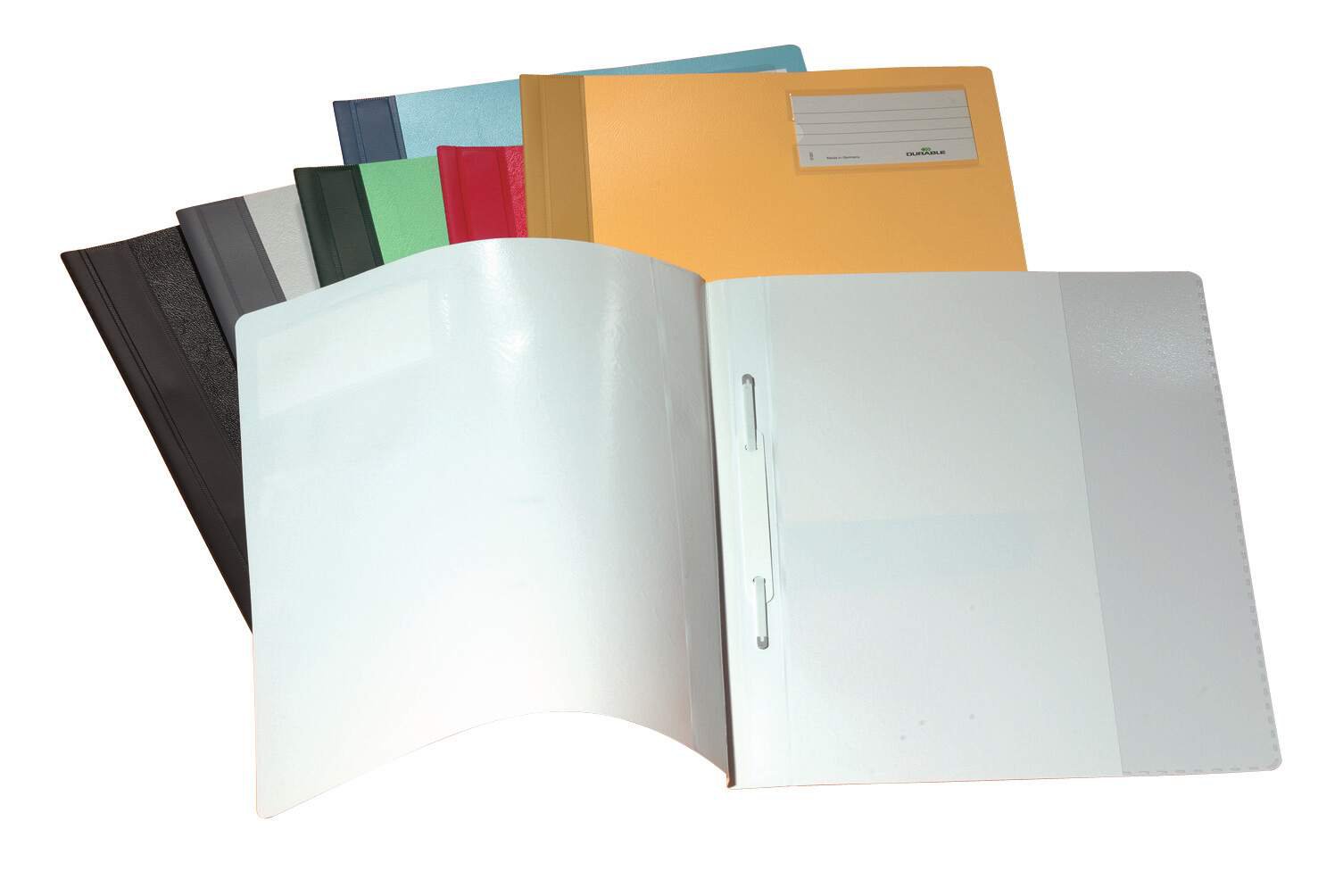 Professional project folder with coloured covers and a transparent inner pocket for storing unpunched files. The plastic-coated stapling mechanism with end caps makes inserting documents a breeze and keeps them secure.<br><br>Includes an insert channel for suspension rails (product #1531) and a labelling window for easy organisation. Environmentally friendly in accordance with ISO 14021: 100% recyclable<br><br>Dimensions: 280 x 330 mm (W x H)<br>Extra wide A4 format suitable for punched pockets