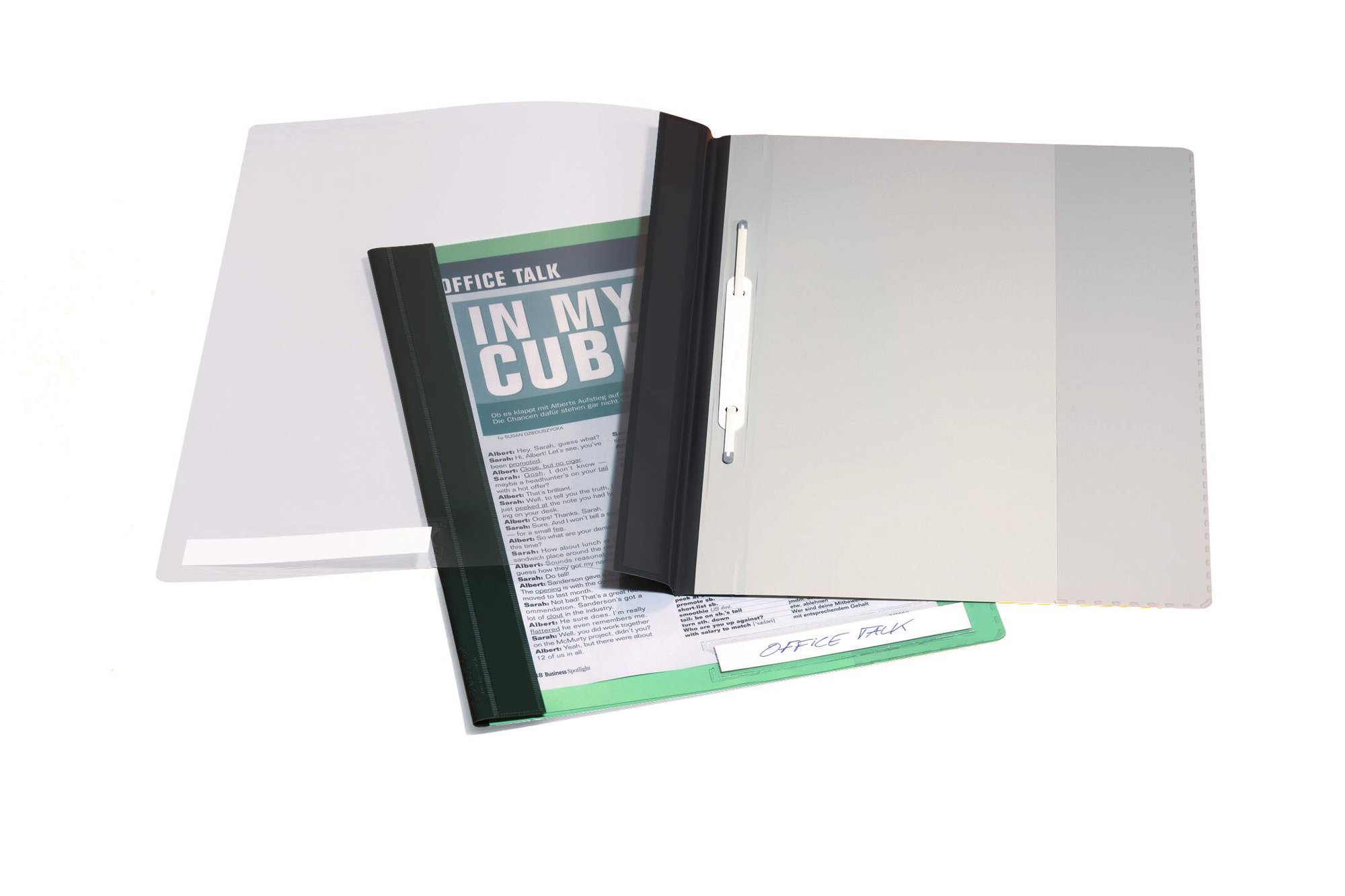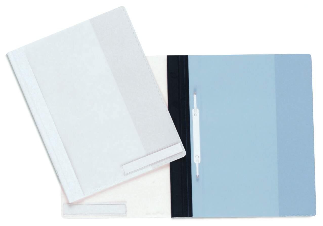 Professional Clear View folder with transparent front cover, coloured back and a transparent inner pocket. The plastic-coated end cap stapling mechanism makes inserting documents a breeze while keeping them secure.<br><br>Includes an insert channel for suspension rails (product #1531) and a labelling window for easy organisation. Environmentally friendly in accordance with ISO 14021: 100% recyclable<br><br>Dimensions: 280 x 330 mm (W x H)<br>Extra wide A4 format suitable for punched pockets