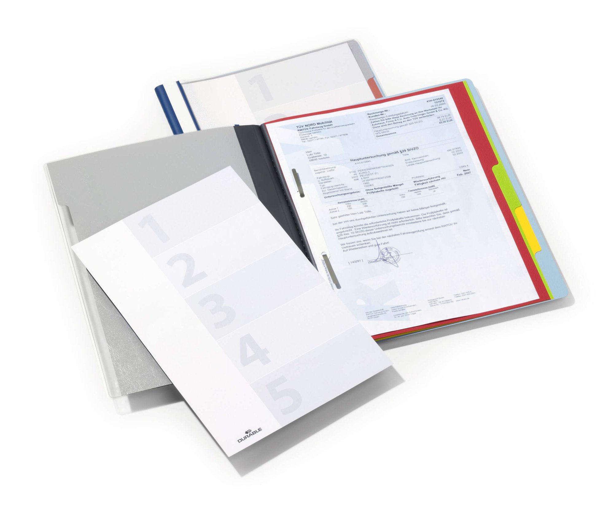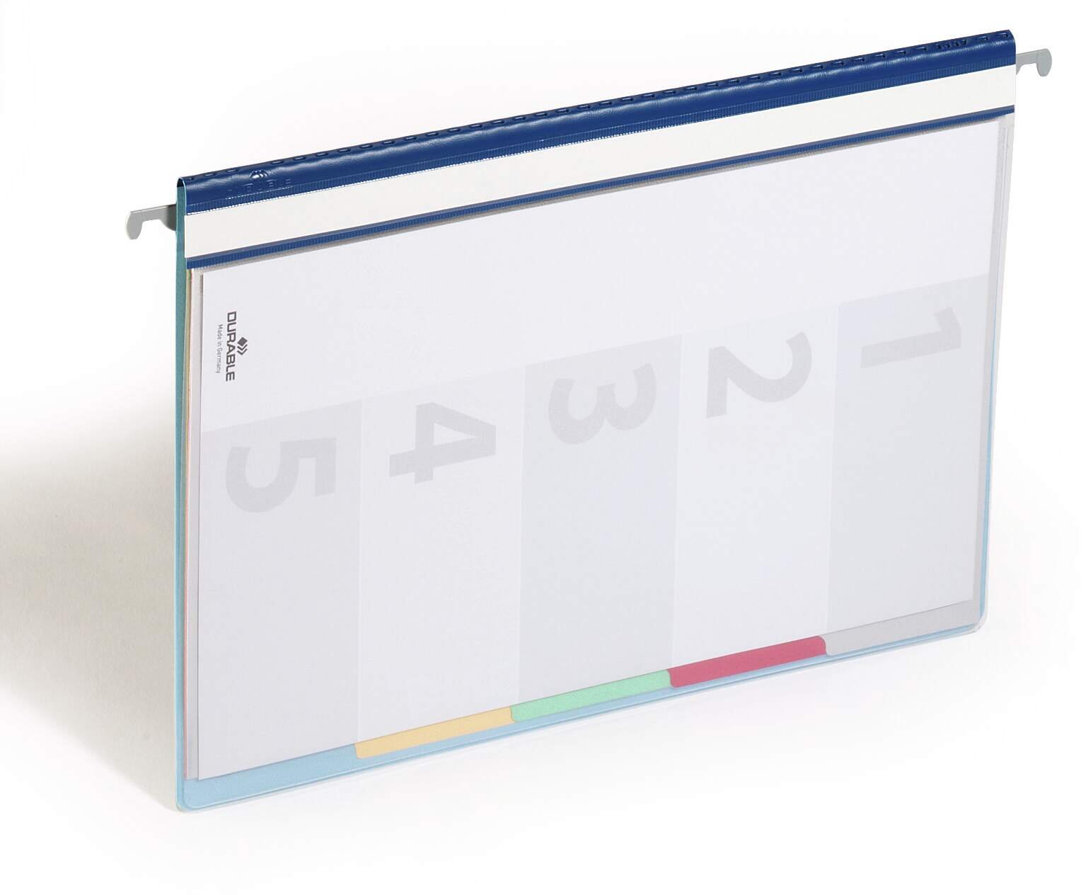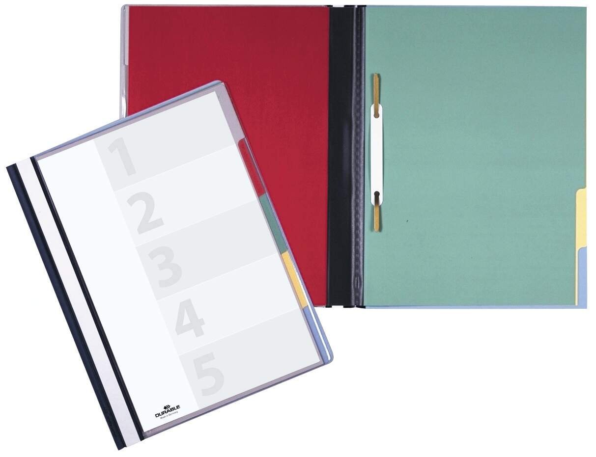 The Durable DIVISOFLEX contains 5 colour coded tabbed Compatibleartments with separate filing mechanisms for easy organisation. The file features an anti-glare anti-tear transparent clear view cover pocket with blank index sheet.<br><br>Includes an insert channel for suspension rails (product #1531) and a full length labelling window for easy organisation. Environmentally friendly in accordance with ISO 14021: 100% recyclable.<br><br>Dimensions: 244 x 310 mm (W x H)