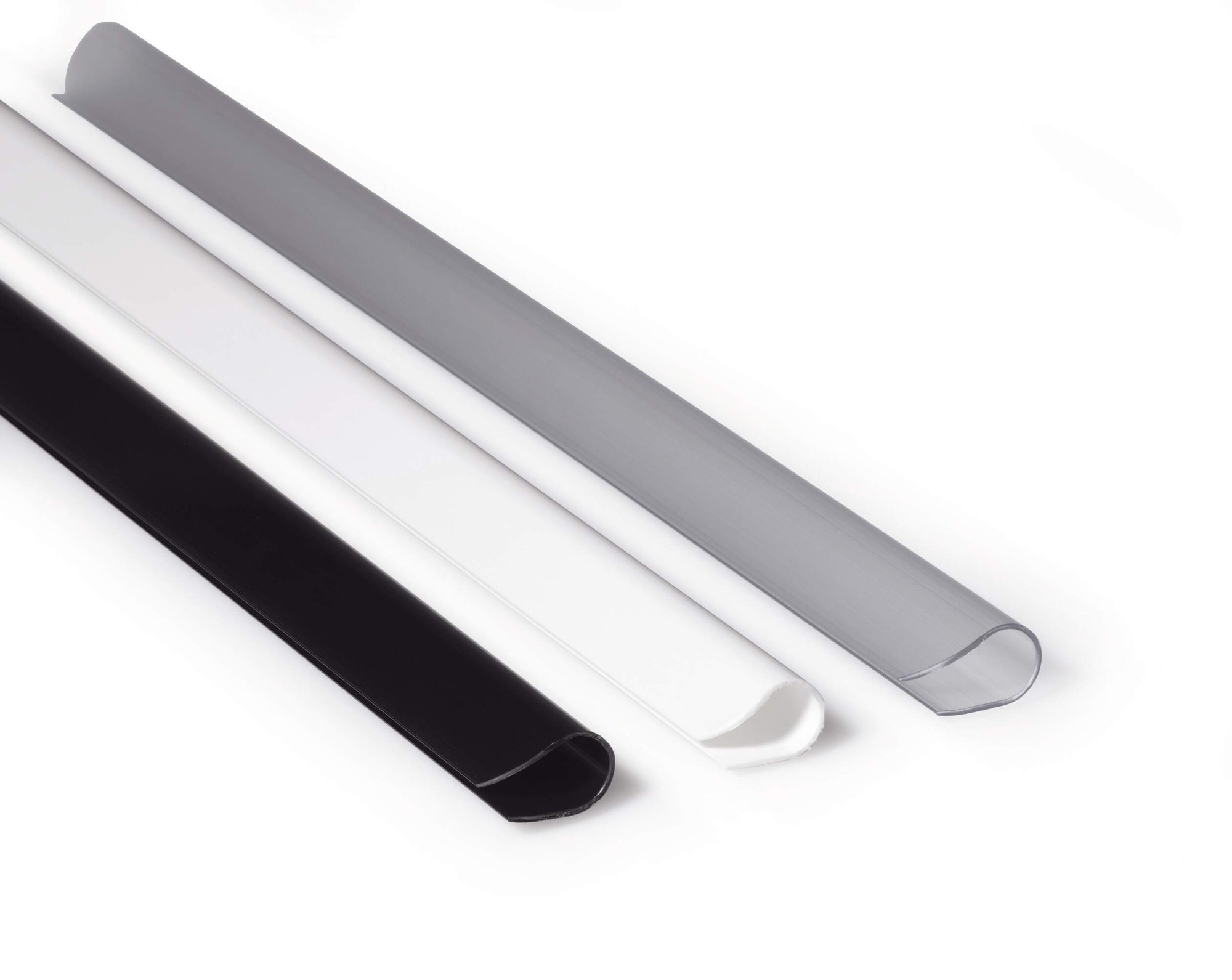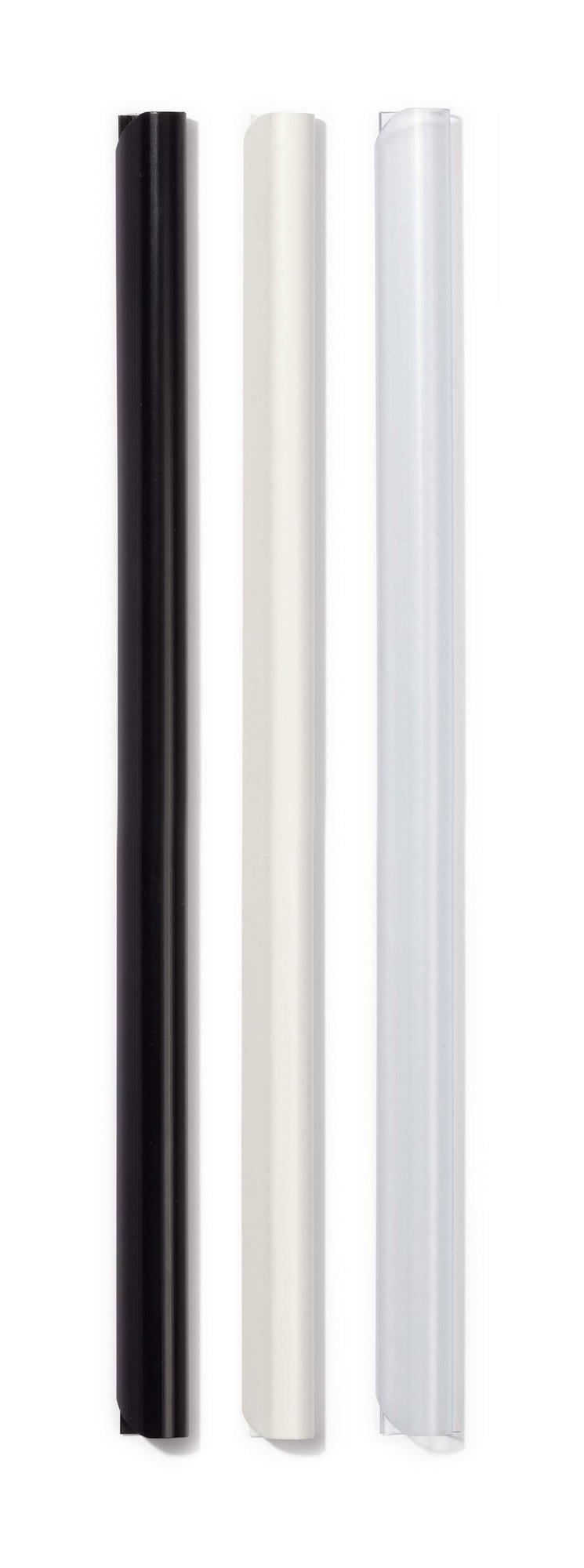 No hole punches no problem. The SPINEBAR is a versatile binding system for unpunched documents. Simply slide the paper into the spine bar and you are done!<br><br>The uniquely shaped contoured ends are built to allow smooth and easy insertion. It is designed to meet every requirement, ideal for binding just a few sheets of paper, as well as entire publications and brochures.<br><br>Binder width: 9 mm<br>Capacity: approximately 80 sheets of A4<br>Available in black, white, red, green, blue, assorted, and transparent colours