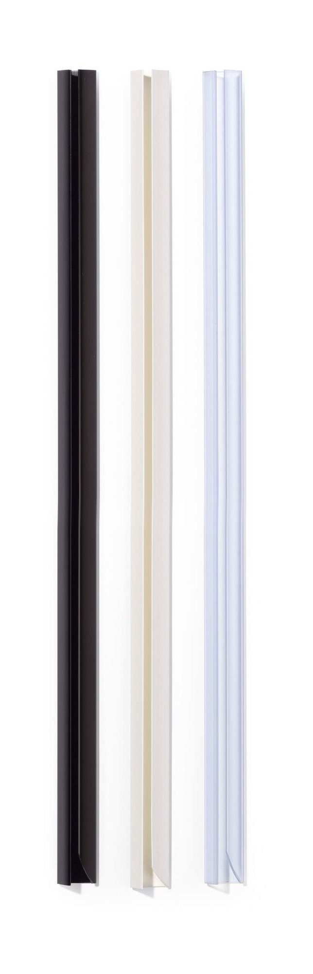 No hole punches no problem. The SPINEBAR is a versatile binding system for unpunched documents. Simply slide the paper into the spine bar and you are done!<br><br>The uniquely shaped contoured ends are built to allow smooth and easy insertion. It is designed to meet every requirement, ideal for binding just a few sheets of paper, as well as entire publications and brochures.<br><br>Binder width: 12 mm<br>Capacity: approximately 100 sheets of A4<br>Available in black, white, red, green, blue, assorted, and transparent colours