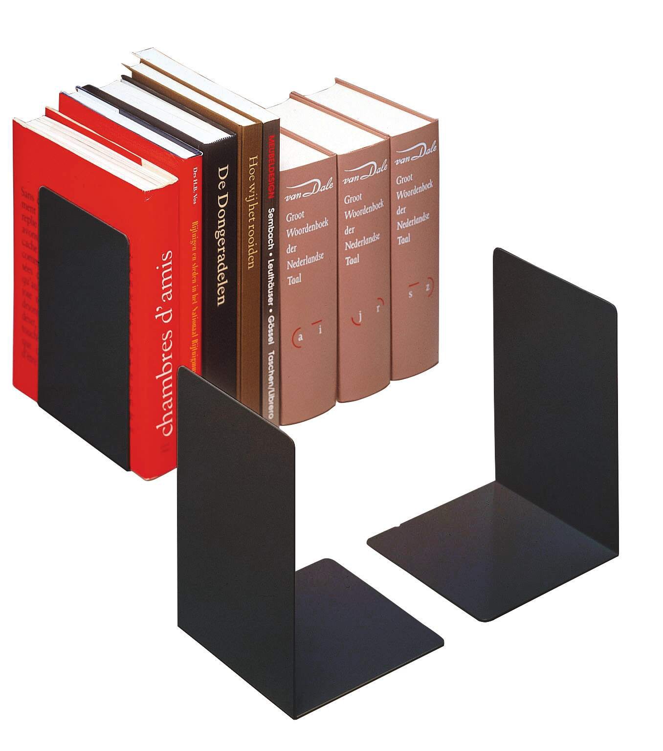 Durable bookends are made from high quality steel with a smooth epoxy powder coated finish for a premium feel. The minimalist German design features a low profile L shape that takes up less space on your shelfs than T shape alternatives.<br><br>Keep your books safe and organised, they are perfect for desks, mantle pieces and shelves providing a neat and tidy appearance.<br><br>Made with 60% recycled materials, 100% recyclable and built in accordance with ISO 14021, a high standard for eco-friendly products.<br><br>Dimensions: 160 x 160 x 220 mm (L x W x H)<br>Quantity: 2<br><br>Designed in Germany and built to last