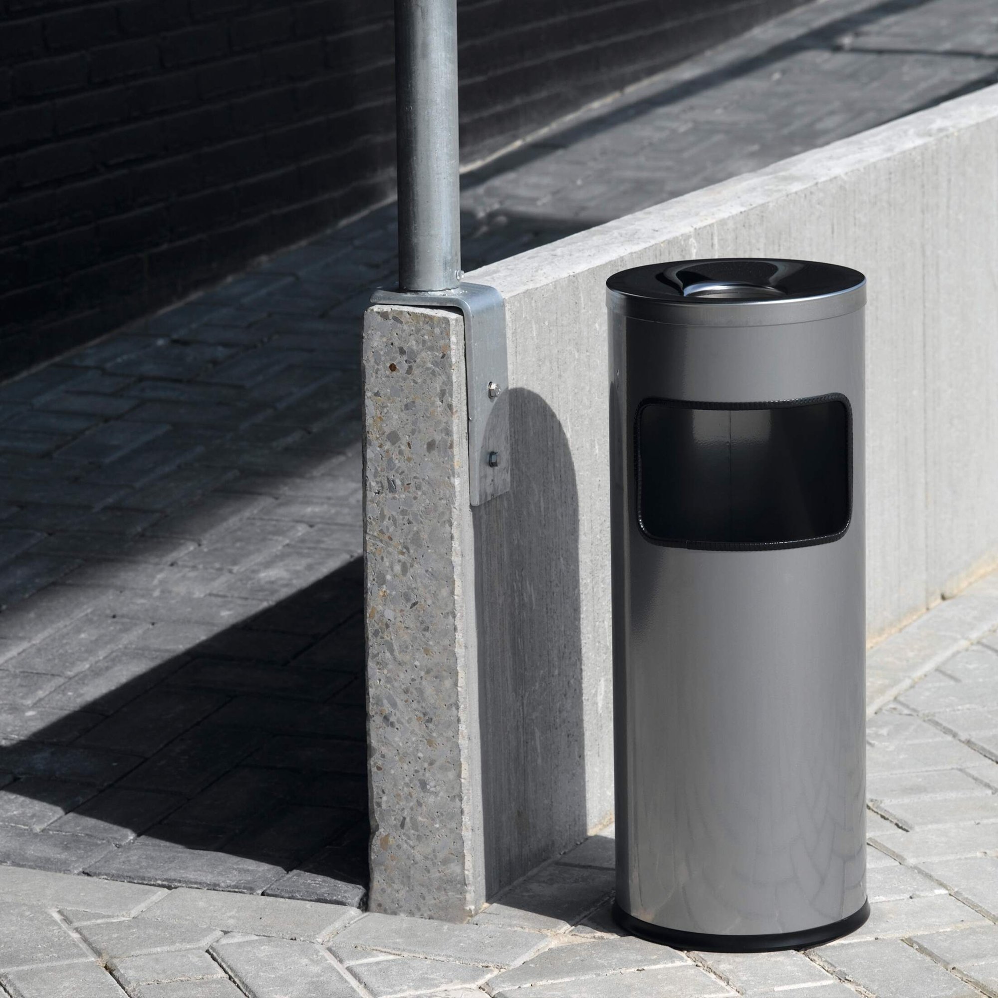 Introducing our integrated self-extinguishing ashtray bin, the perfect addition to covered outdoor areas where cleanliness and safety are paramount. This bin features a self-extinguishing lid that ensures cigarette butts are safely extinguished upon disposal by disrupting the oxygen flow inside the bin.<br><br>With its sleek design and Compatibleact size, this bin seamlessly integrates into any covered outdoor space, from restaurant patios to office courtyards. The self-extinguishing feature not only promotes fire safety and reduces the need for sand refills, it also eliminates odours and keeps the surroundings neat and tidy.<br><br>Say goodbye to scattered cigarette butts with this convenient and stylish solution.<br><br>Includes<br>1 x SAFE+ ashtray bin<br>1 x Removable inner bin<br>1 x Removable ashtray insert<br><br>Specifications<br>Applications: Indoors and covered outdoor areas<br>Dimensions extinguisher (H x Ø): 60 x 240 mm<br>Dimensions inner container (H x Ø): 380 x 220 mm<br>Product dimensions (H x Ø): 630 x 250 mm<br><br>Made in Europe designed to last