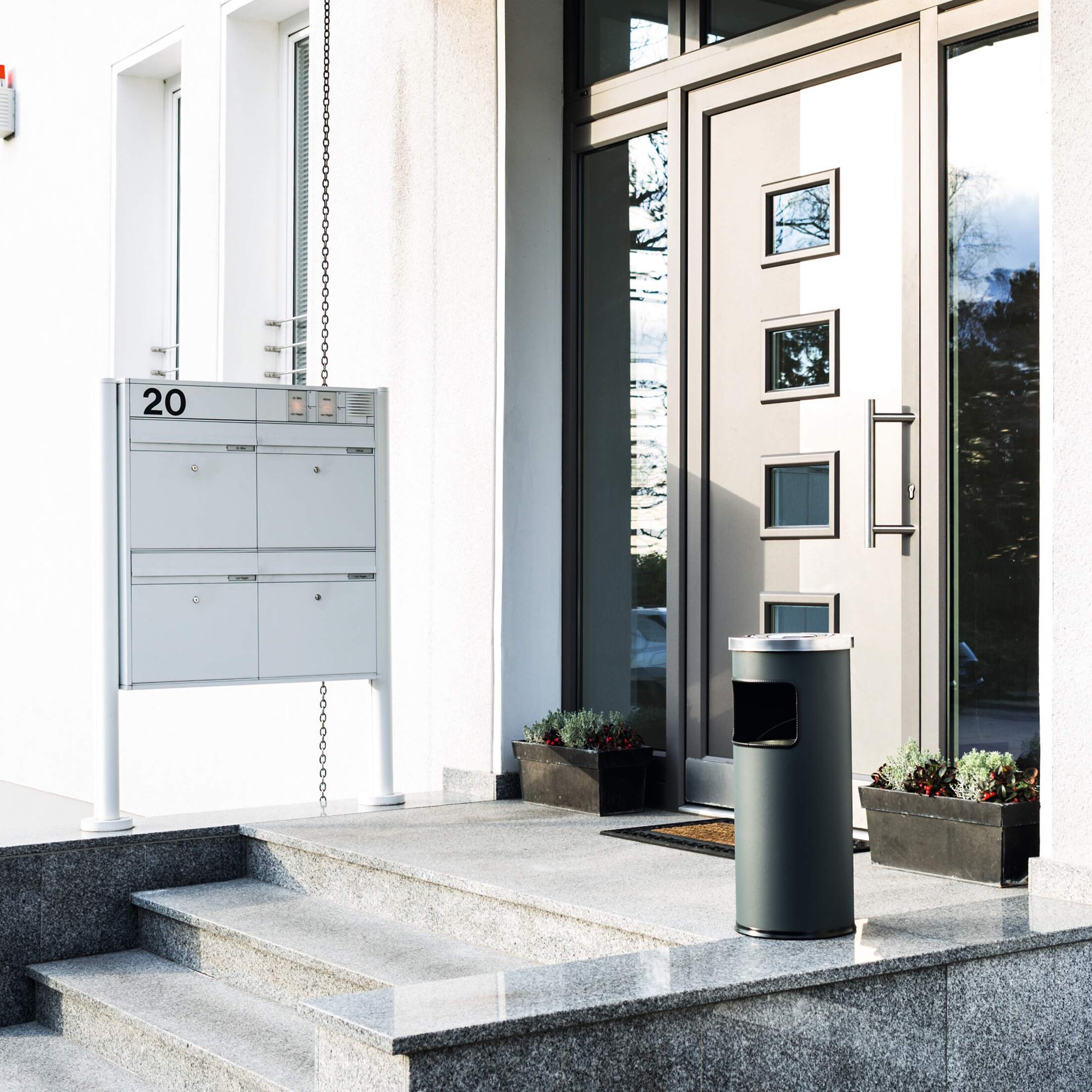 Introducing our integrated self-extinguishing ashtray bin, the perfect addition to covered outdoor areas where cleanliness and safety are paramount. This bin features a self-extinguishing lid that ensures cigarette butts are safely extinguished upon disposal by disrupting the oxygen flow inside the bin.<br><br>With its sleek design and Compatibleact size, this bin seamlessly integrates into any covered outdoor space, from restaurant patios to office courtyards. The self-extinguishing feature not only promotes fire safety and reduces the need for sand refills, it also eliminates odours and keeps the surroundings neat and tidy.<br><br>Say goodbye to scattered cigarette butts with this convenient and stylish solution.<br><br>Includes<br>1 x SAFE+ ashtray bin<br>1 x Removable inner bin<br>1 x Removable ashtray insert<br><br>Specifications<br>Applications: Indoors and covered outdoor areas<br>Dimensions extinguisher (H x Ø): 60 x 240 mm<br>Dimensions inner container (H x Ø): 380 x 220 mm<br>Product dimensions (H x Ø): 630 x 250 mm<br><br>Made in Europe designed to last