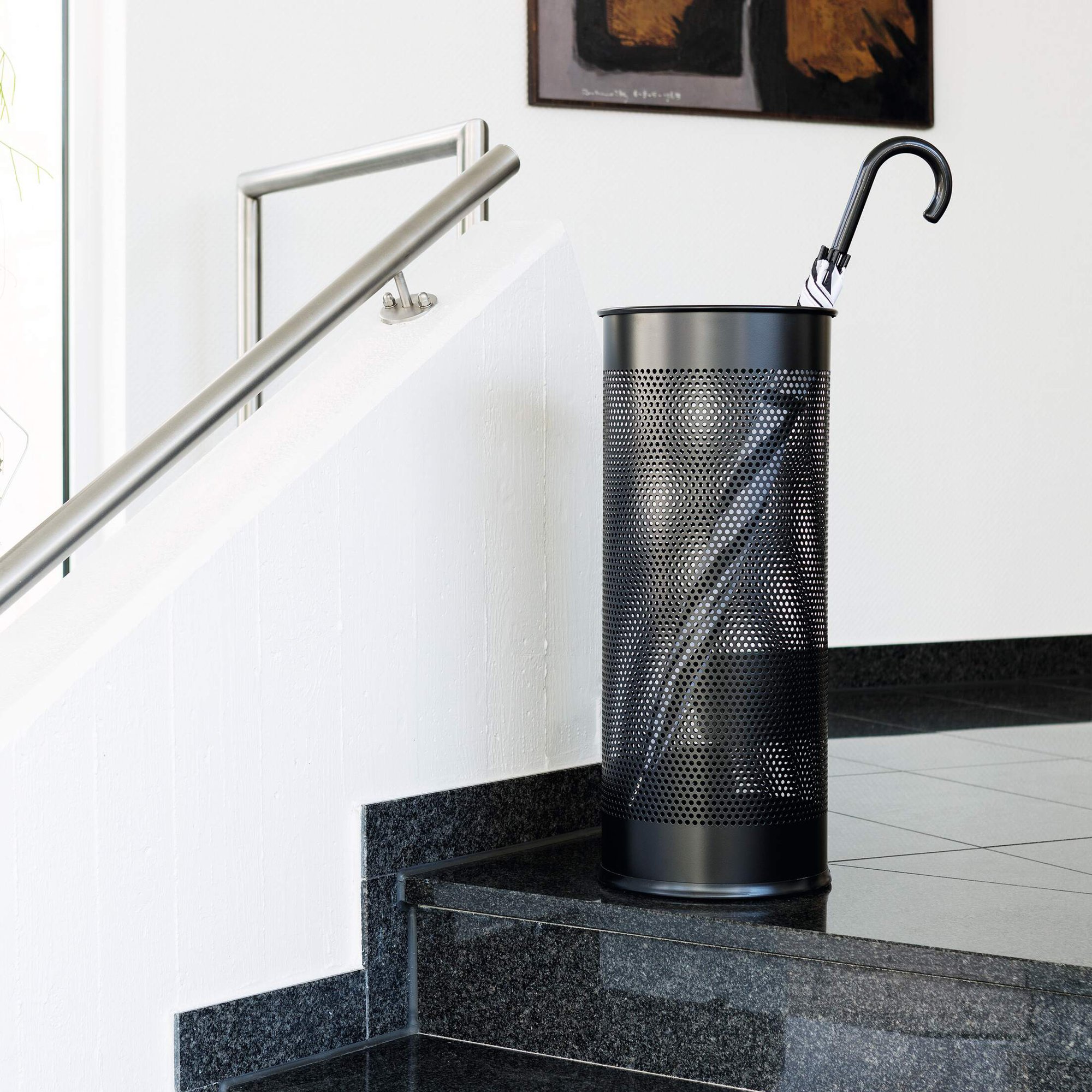 The Durable umbrella stand is made out of steel and epoxy enamel ensuring ultra hard finish and durability. Ideal for entrance areas, at home, offices and stores, the 260mm diameter and 28.5 litre capacity has space for multiple umbrellas. The perforated finish around the metal stand is not only decorative but allows additional airflow for drying brolly's. Dimensions (H x Diameter): 620 x 260 mm.