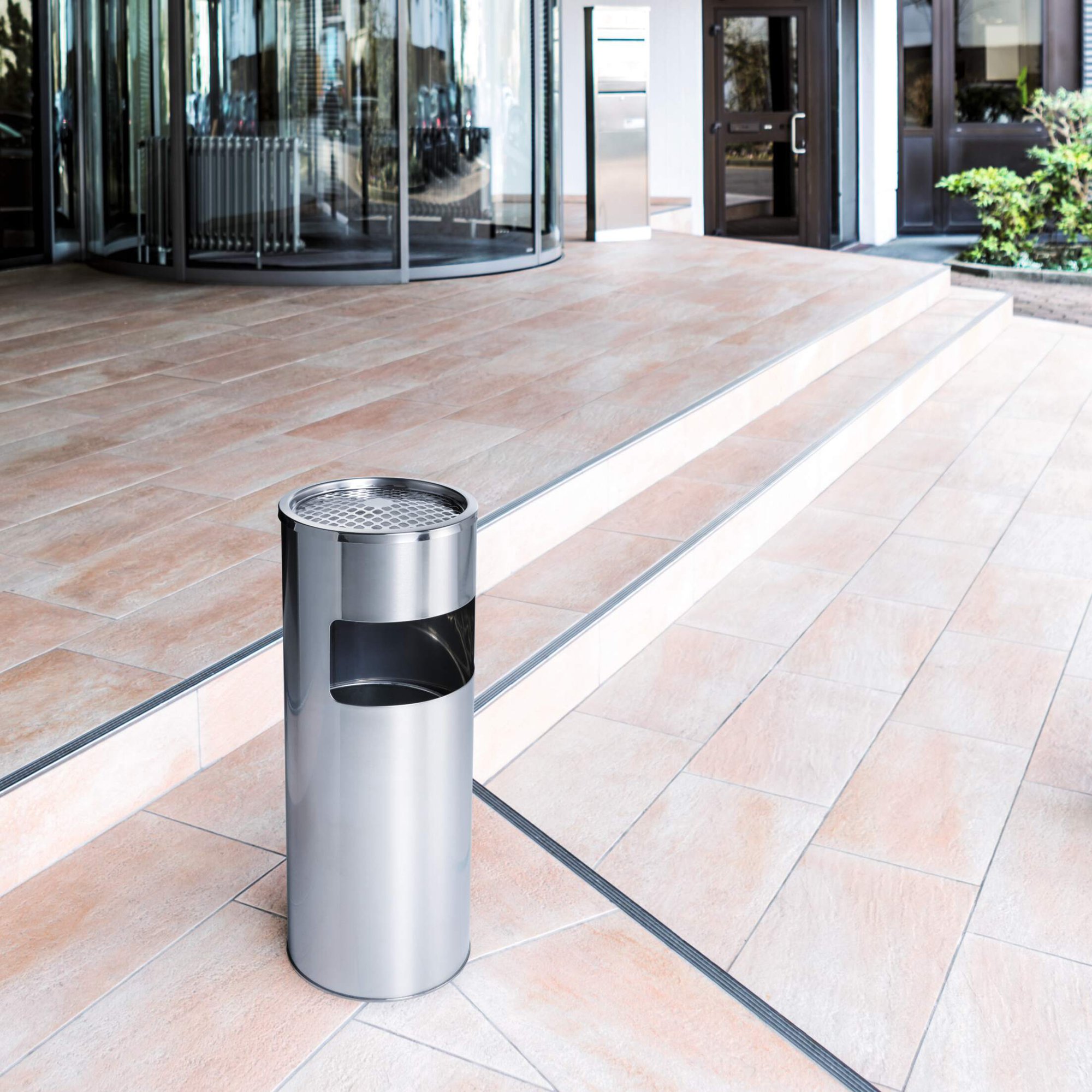 Introducing our 17L integrated ashtray bin, a smart solution for keeping covered outdoor spaces clean and accommodating smoking needs. With a removable aluminium insert, cleaning is a breeze. Durable and sleek, it fits seamlessly into any environment, ensuring a tidy and organised space. Say goodbye to scattered cigarette butts with this convenient and stylish solution.<br><br>Includes<br>1 x Safe ashtray bin<br>1 x Removable inner bin<br>1 x Removable ashtray insert<br>1 x Bag of silver ashtray sand (1.5kg)<br><br>Specifications<br>Applications: Indoors and covered outdoor areas<br>Dimensions removable ashtray (H x Ø): 60 x 240 mm<br>Dimensions inner container (H x Ø): 380 x 220 mm<br>Product dimensions (H x Ø): 620 x 260 mm<br><br>Designed in Germany