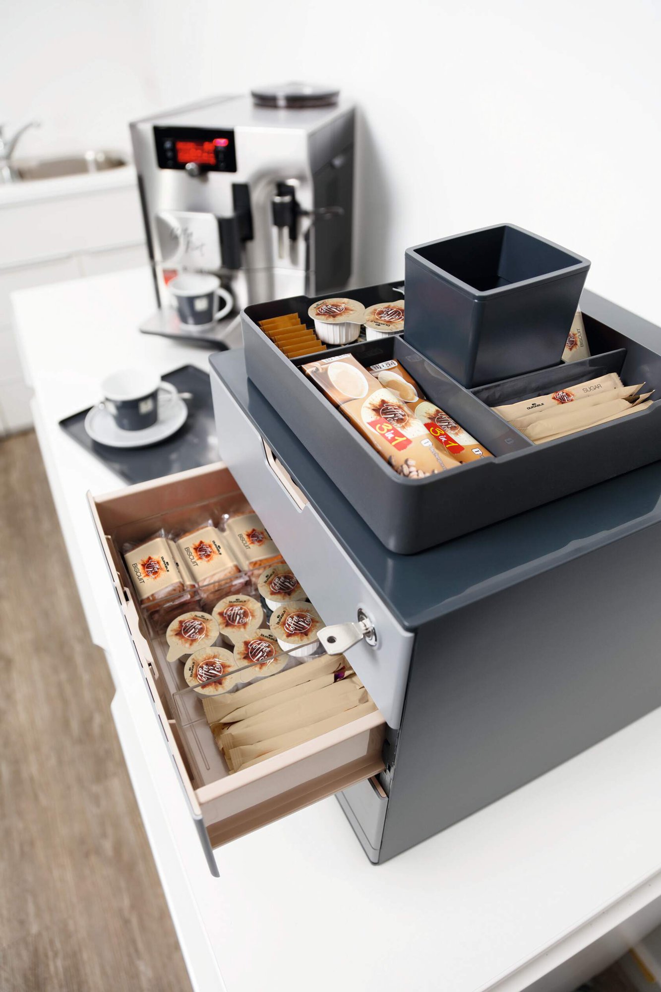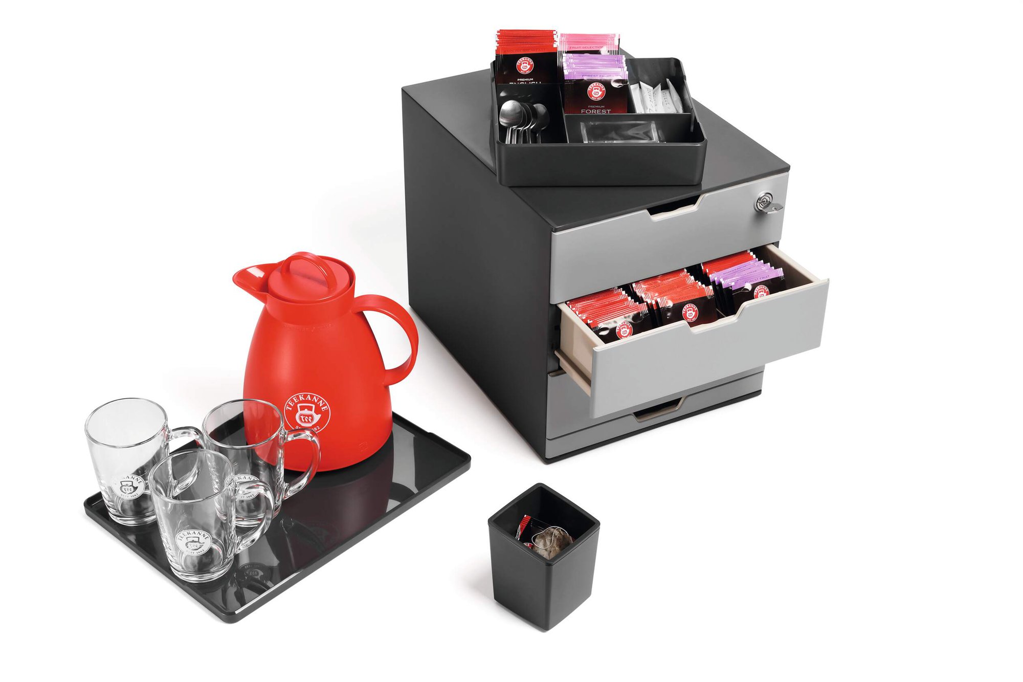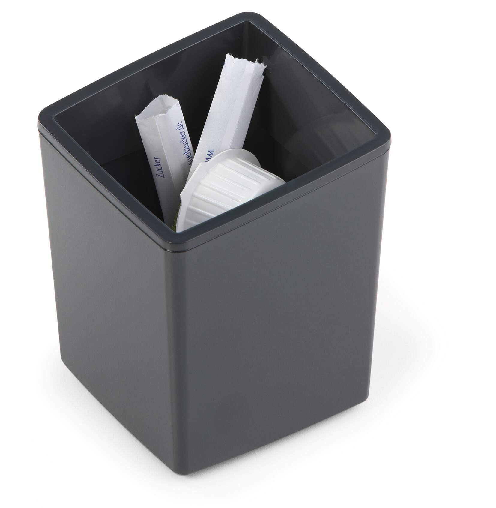 Small waste bin / pen pot, perfect for common catering and office supplies such as coffee pods, tea bags, sugar sachets, scissors and pens. The pot is wipe clean and dishwasher safe making it quick and easy to clean and maintain.<br><br>Made with 100% recyclable materials and built in accordance with ISO 14021, a high standard for eco-friendly products.<br><br>Compatible with Durable tray organiser (product # 338658)<br><br>Dimensions: 79 x 100 x 79 mm (W x H x L)<br>Made in Germany