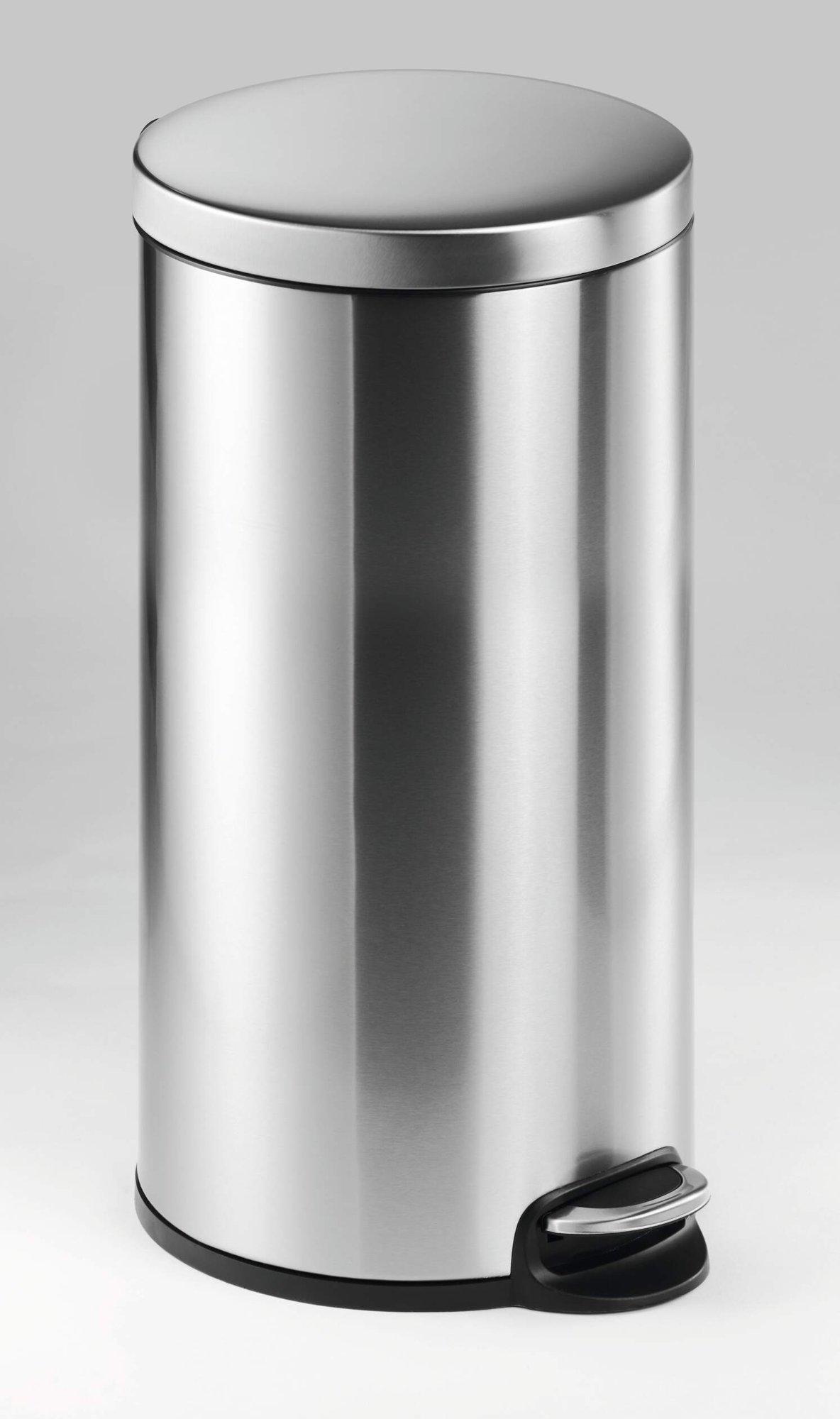 Stainless steel pedal bin that has a 30 litre capacity. Perfect for use in the office, warehouse or at home. The bin is a removable inside container making it easy to clean. Bags can be inserted and held in place with a rubber ring. <br><br>The lid is easy to open thanks to the foot pedal and has a silent closing hinge built in. The bin has a plastic base surround to provide stability and to protect against corrosion.