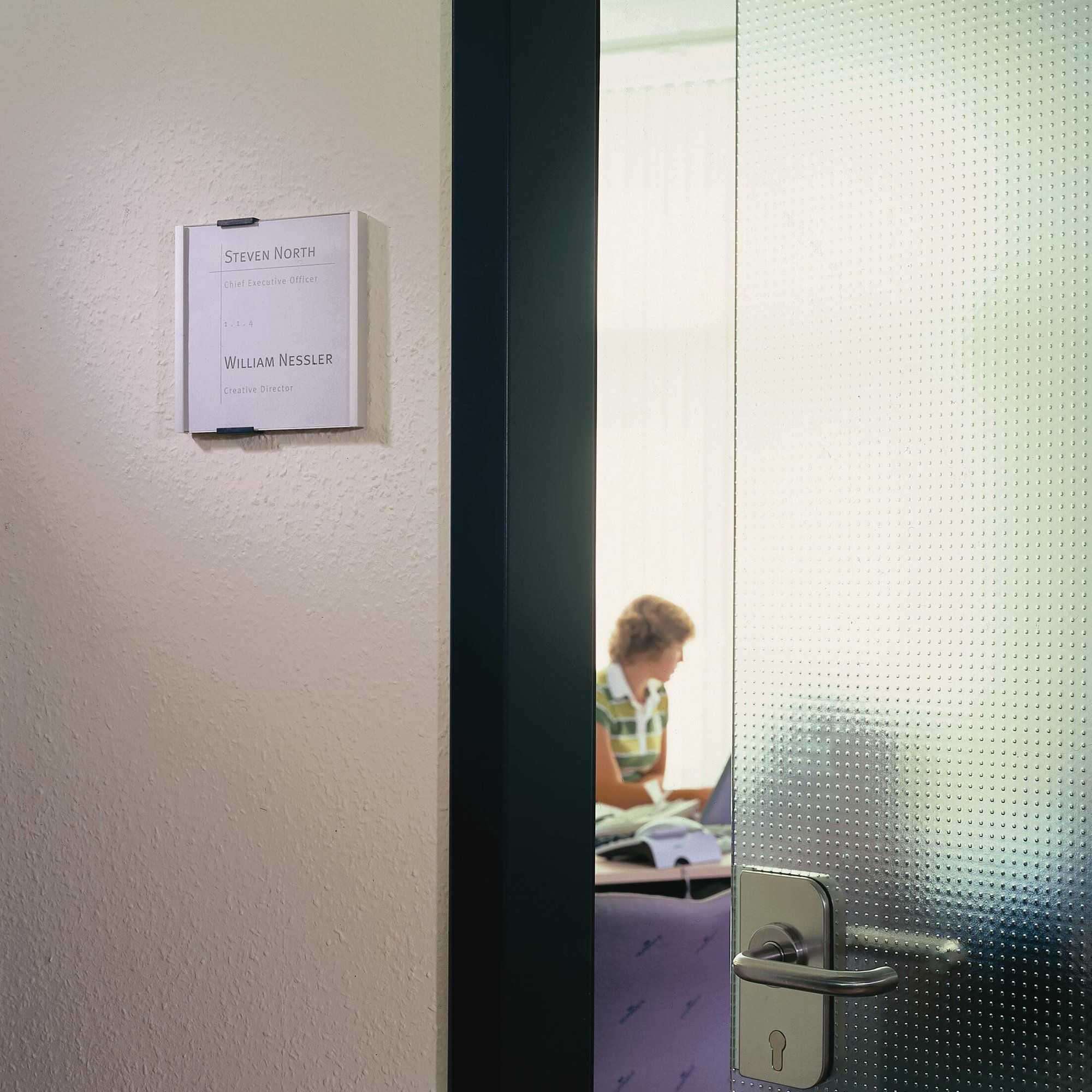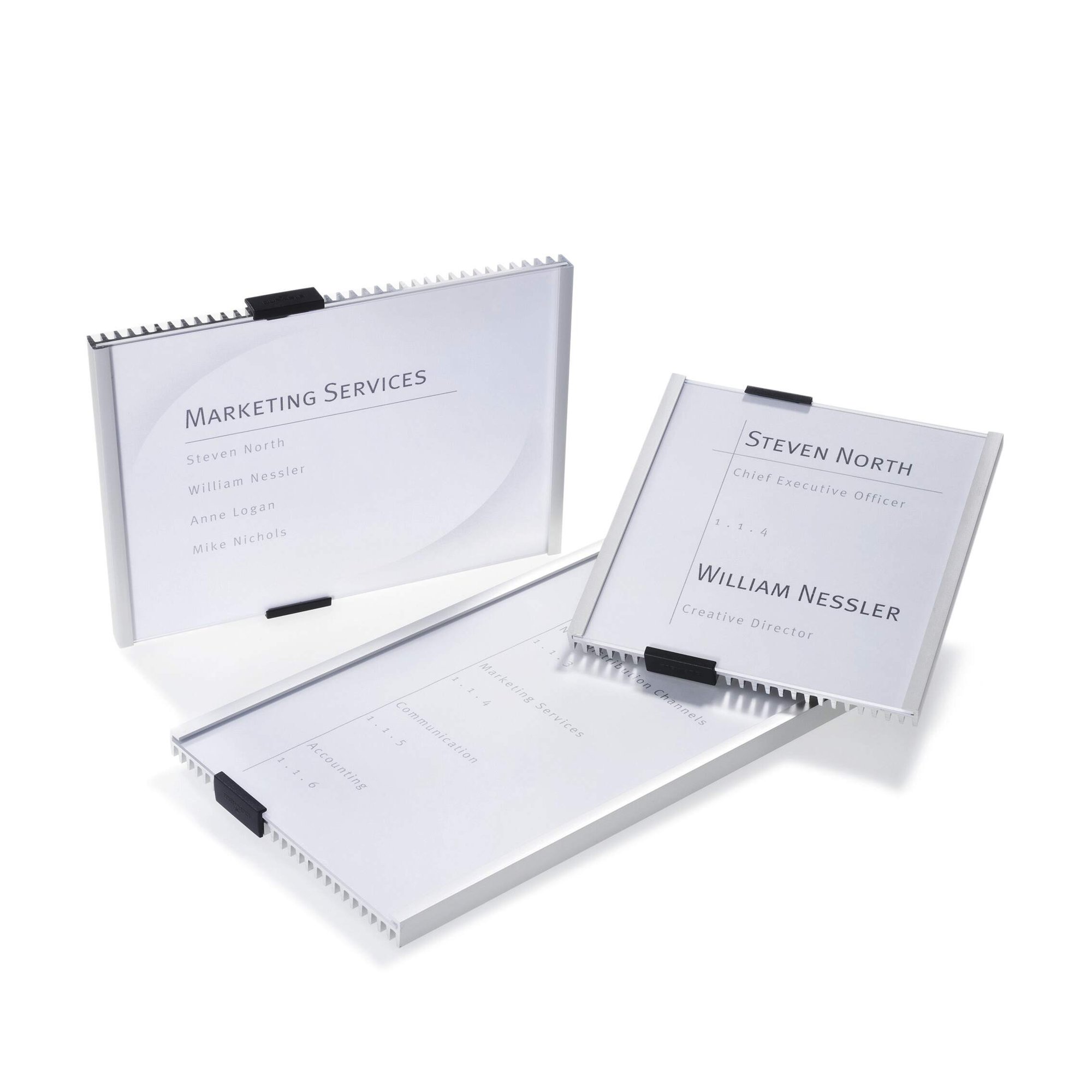 Modern German-designed door plates with ribbed aluminium backing and crystal clear acrylic window. The stylish offset fixing caps make changing inserts a breeze.<br><br>Made with 80% recycled materials, 100% recyclable and built in accordance with ISO 14021, a high standard for eco-friendly products.<br><br>Includes:<br>1X Door plate info sign<br>2X Adhesive buttons<br>2X Screws<br>2X Wall plugs<br>1X Mounting instructions<br>1X Paper insert<br><br>Insert dimensions: 149 x 148.5 mm<br>Quantity: 1<br><br>Made in Germany