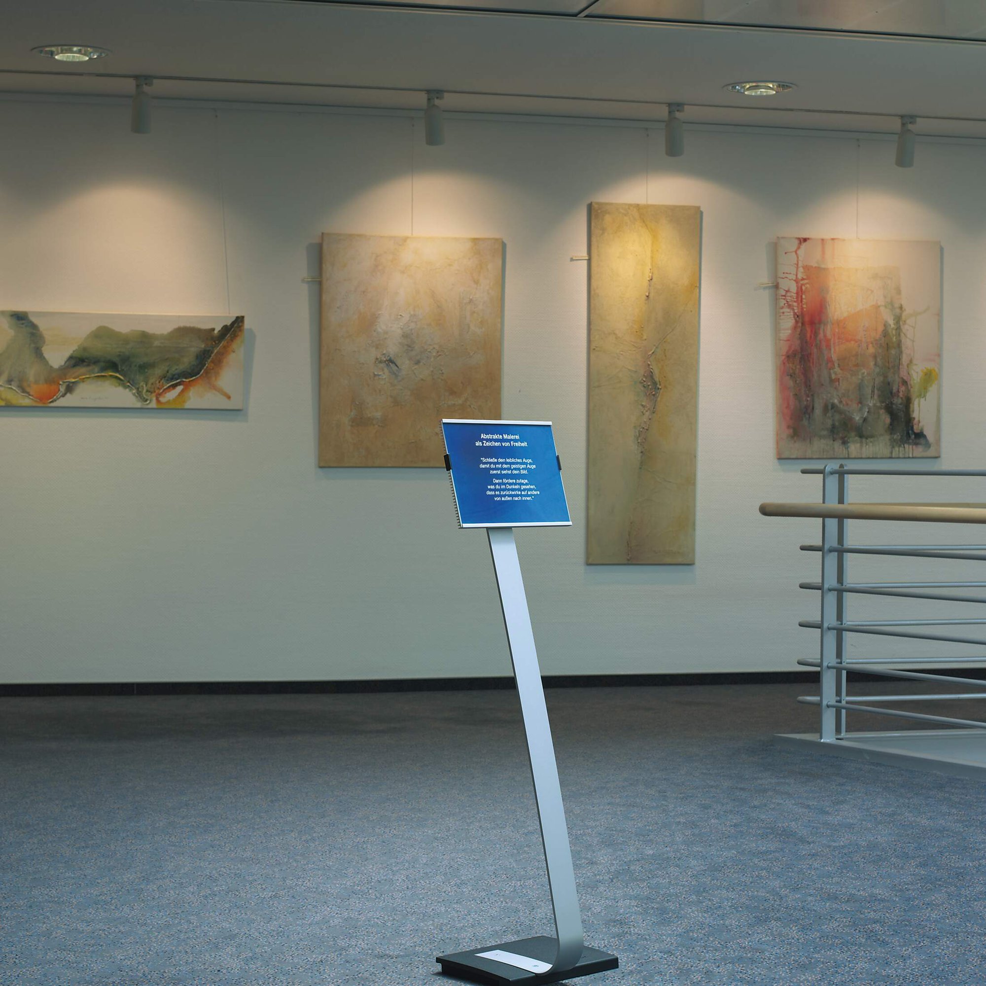 Elegant and high-quality floor-standing information presenter with an A4 rotatable display panel. The crystal sign is created from clear acrylic plates and a semi-transparent printable insert. The panel is easily rotated from portrait to landscape via a simple snap-in mechanism and has 10° of viewing angle adjustment.<br><br>The base is made of cast iron with rubber pads to ensure a safe, non-slip platform. It is Ideal for trade fairs, exhibitions and showrooms as well as for use in the restaurant and hospitality sectors.<br><br>All our display stands are built and designed in-house in Germany. They are made to a high standard from premium quality materials and undergo strict quality control. This ensures an excellent finish and extended product lifecycle.<br><br>Provided with a 5-year manufacturer warranty