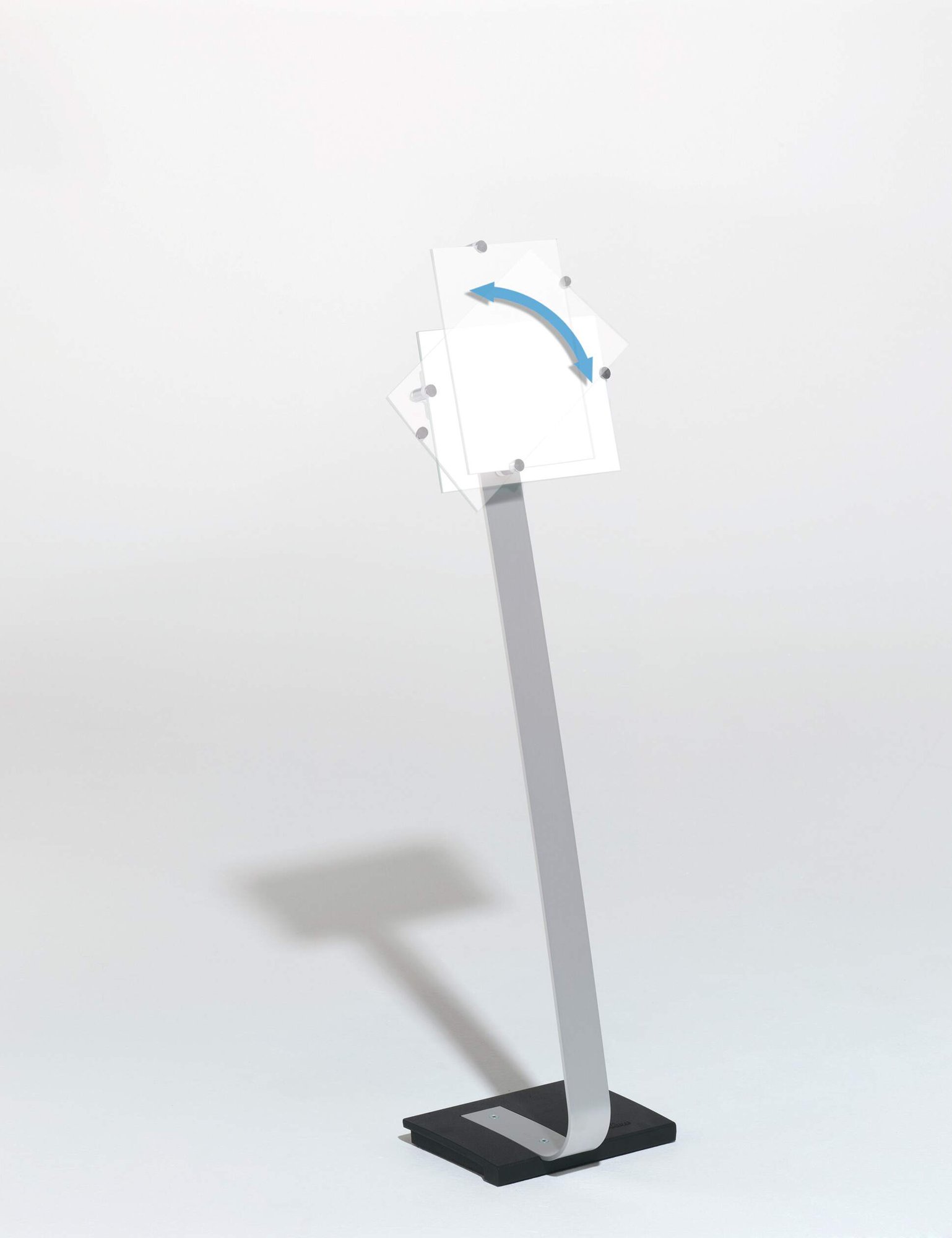 Elegant and high-quality floor-standing information presenter with an A4 rotatable display panel. The crystal sign is created from clear acrylic plates and a semi-transparent printable insert. The panel is easily rotated from portrait to landscape via a simple snap-in mechanism and has 10° of viewing angle adjustment.<br><br>The base is made of cast iron with rubber pads to ensure a safe, non-slip platform. It is Ideal for trade fairs, exhibitions and showrooms as well as for use in the restaurant and hospitality sectors.<br><br>All our display stands are built and designed in-house in Germany. They are made to a high standard from premium quality materials and undergo strict quality control. This ensures an excellent finish and extended product lifecycle.<br><br>Provided with a 5-year manufacturer warranty