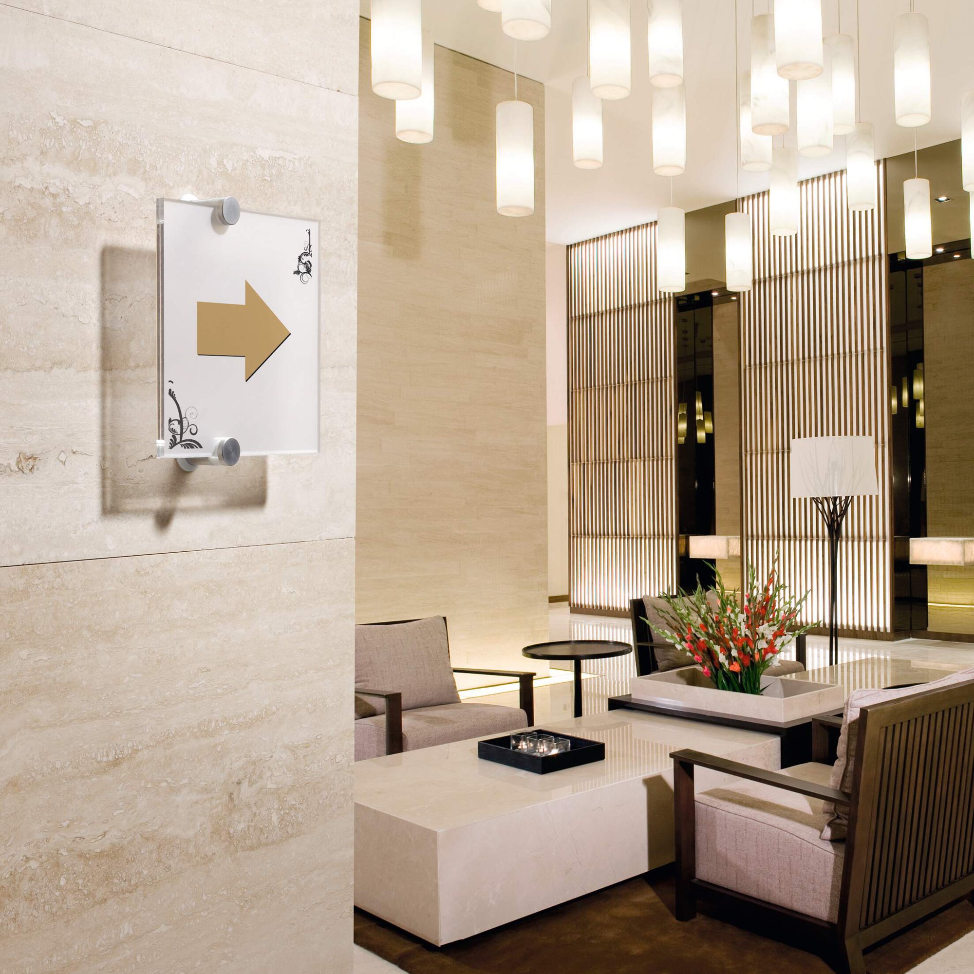 An elegant modern door sign made of brushed steel and crystal clear acrylic plates. The floating appearance is achieved through the use of the included semi-transparent inserts, Compatible with all commonly available ink-jet and laser printers.<br><br>Installation is quick and easy with the included template and screws.<br><br>Includes:<br>1X Doorplate CRYSTAL SIGN<br>2X Micro-perforated mylar inserts<br>1X Mounting kit and template for wall mounting<br>1X Instructions<br><br>Insert dimensions: A5 Landscape (210 x 148 mm)<br>Quantity: 1<br><br>Made in Germany